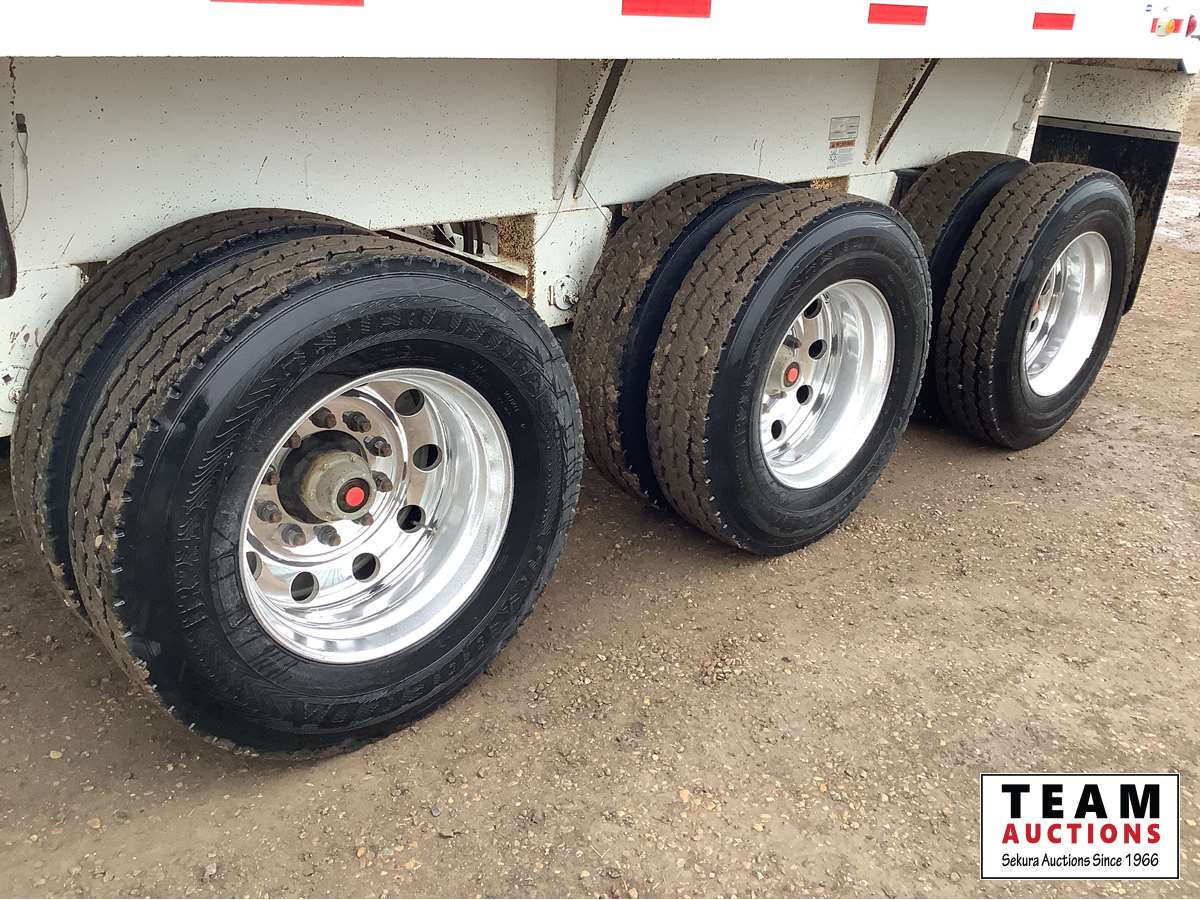 (2) cross gate, close under load, air ride suspension, manual tarp, rear push block, air dump valve, articulating 5th wheel, aluminum rims, 11R24.5 tires