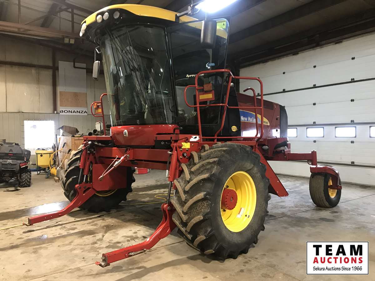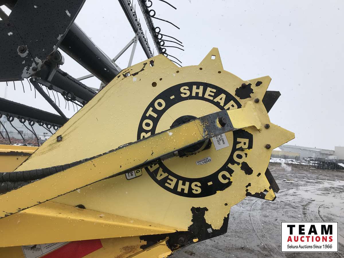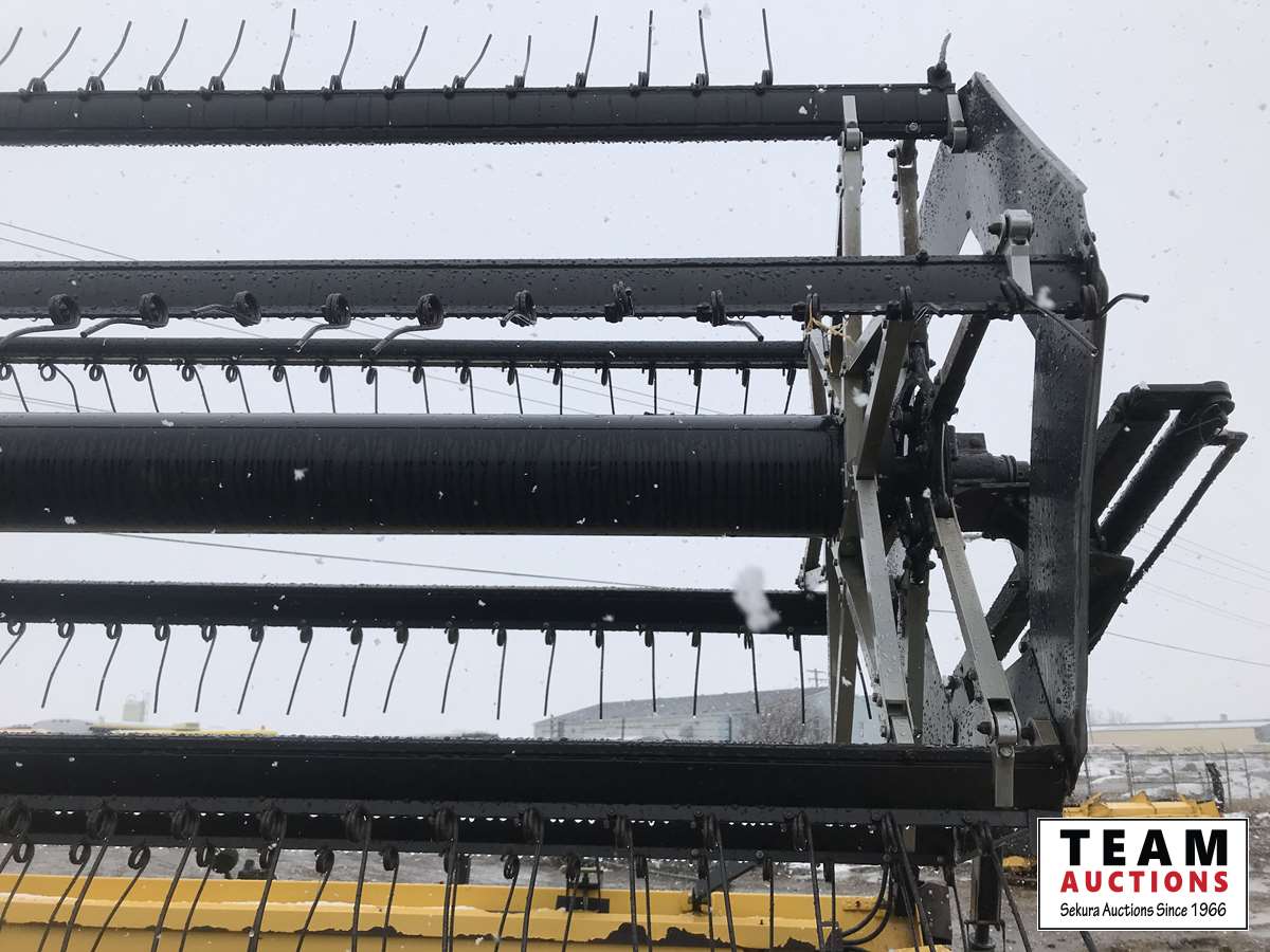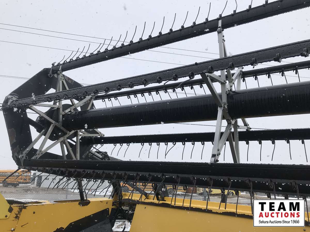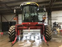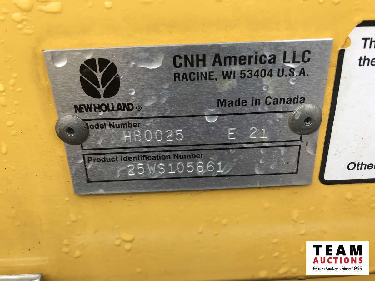 New Holland HB0025 25 ft draper header, Hydrostatic 2 speed, field and road speed, l/r pneumatic header levelling system, auto height and return to cut, hydraulic header tilt, new batteries, reel speed, fore & aft, deluxe cab, buddy seat, air ride rear axle, no DEF, battery shut off switch, Intelli View IV montior, transport self contained, rotoshears w/left and right shutoff, DSA double swath