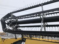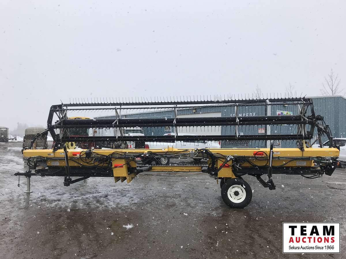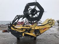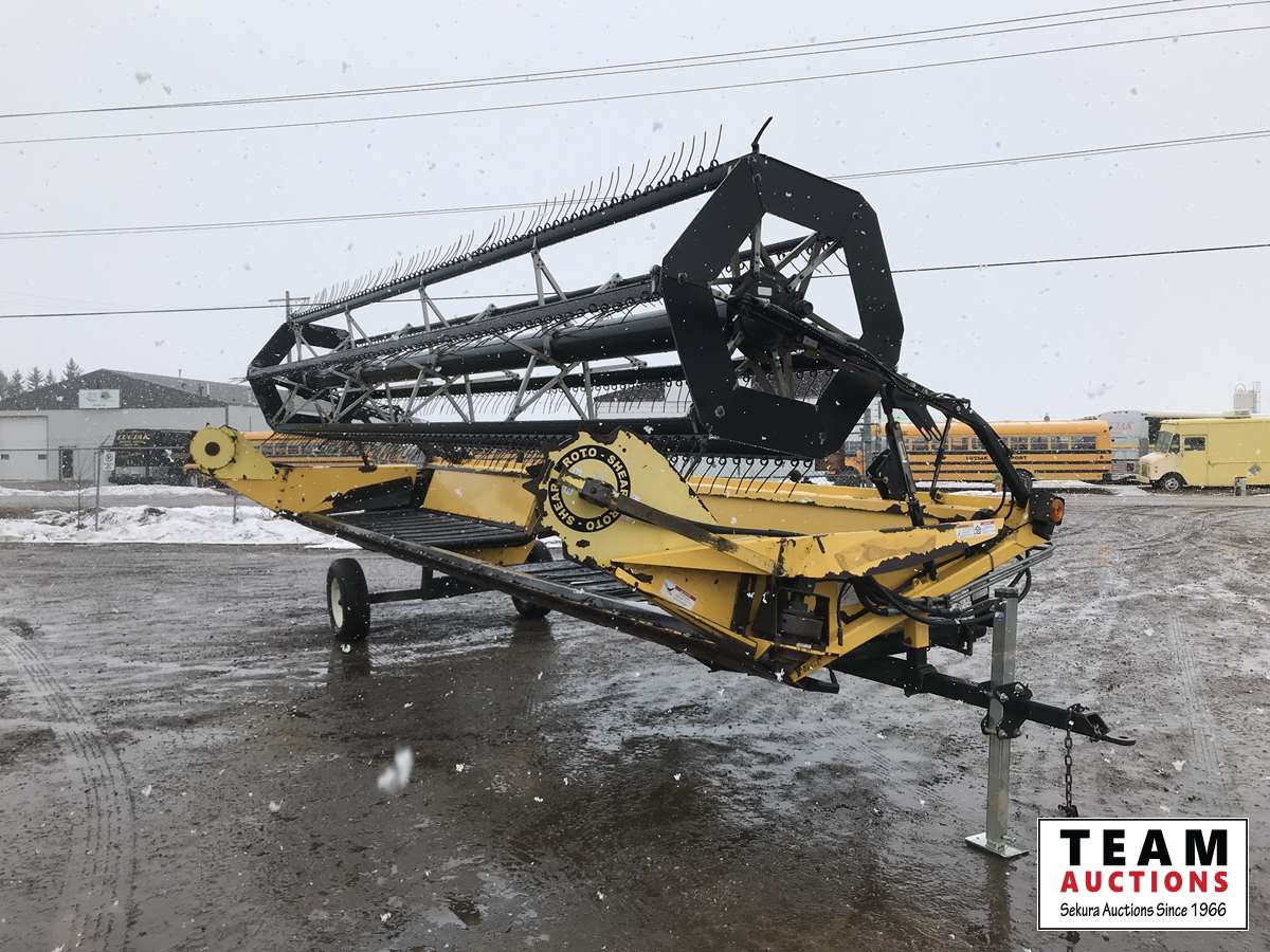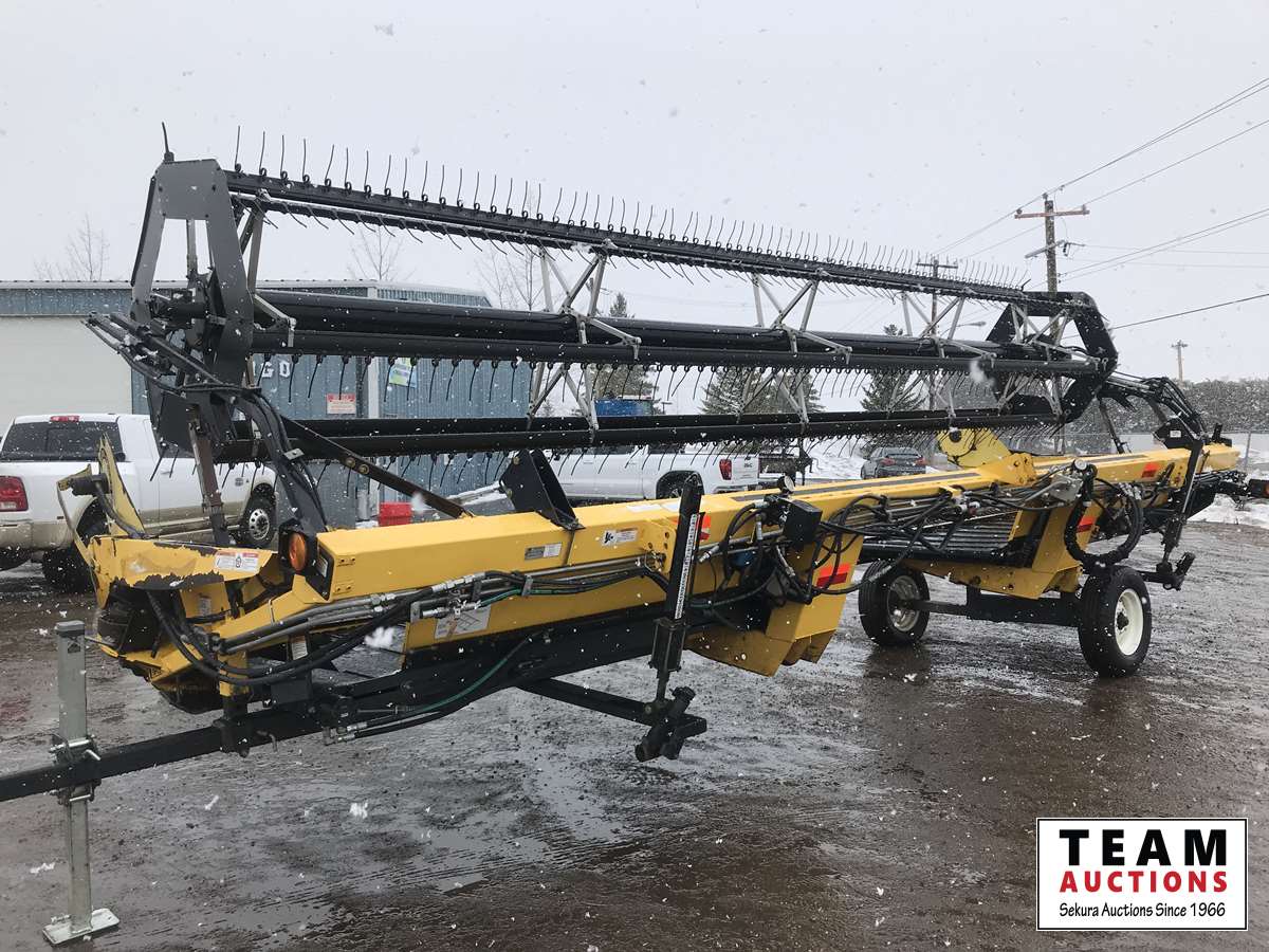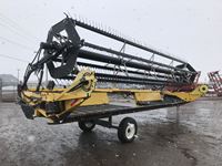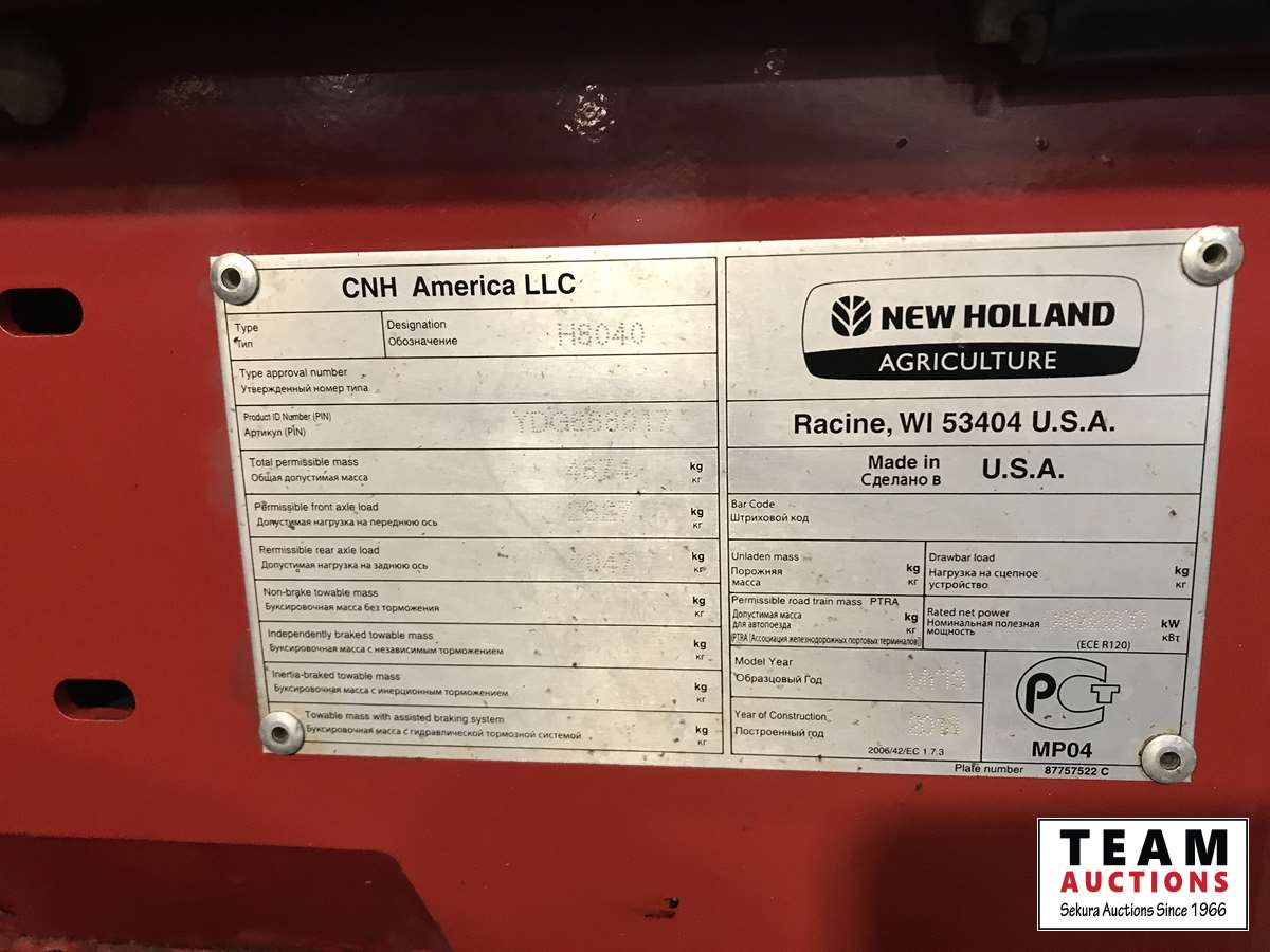 New Holland HB0025 25 ft draper header, Hydrostatic 2 speed, field and road speed, l/r pneumatic header levelling system, auto height and return to cut, hydraulic header tilt, new batteries, reel speed, fore & aft, deluxe cab, buddy seat, air ride rear axle, no DEF, battery shut off switch, Intelli View IV montior, transport self contained, rotoshears w/left and right shutoff, DSA double swath
