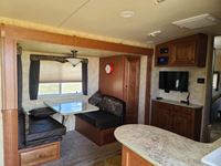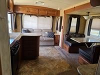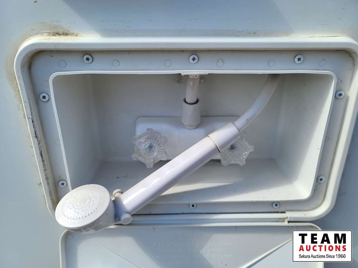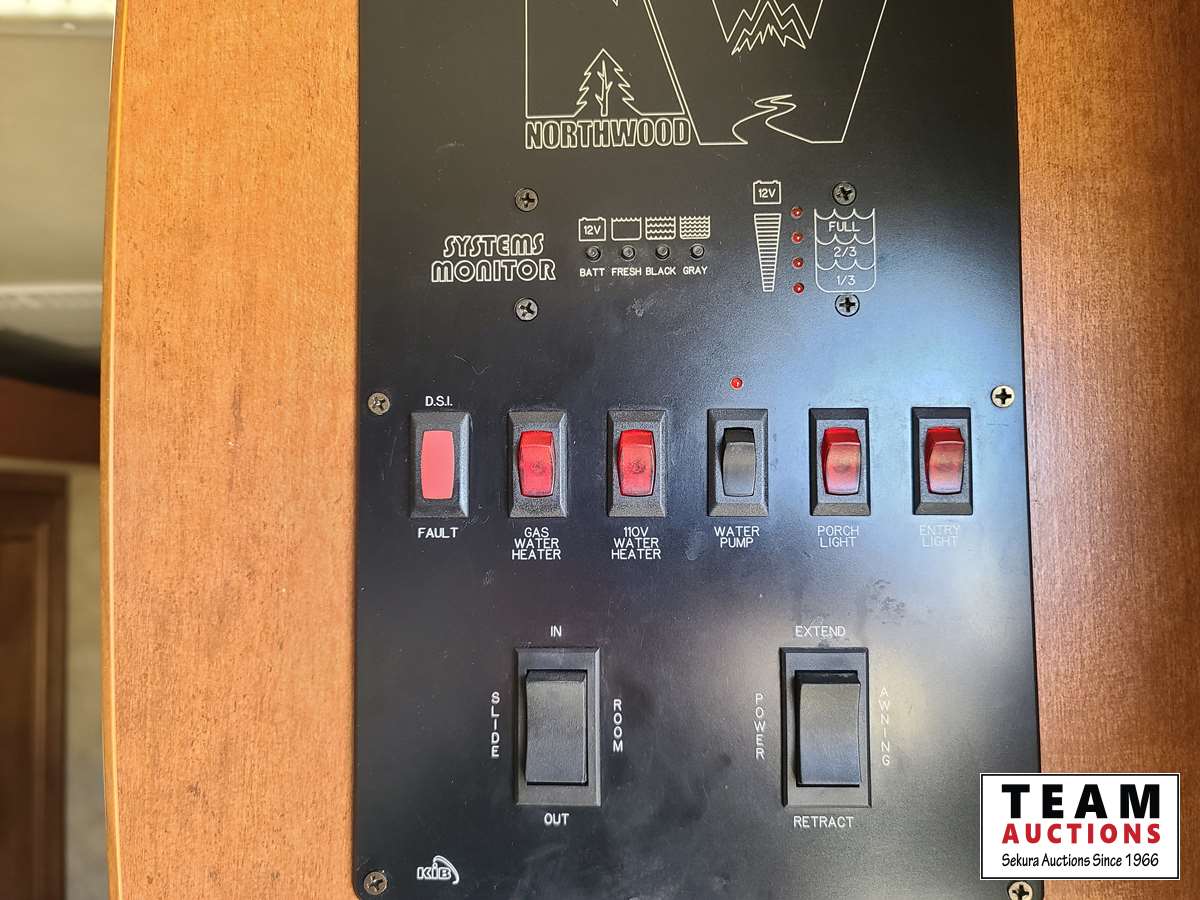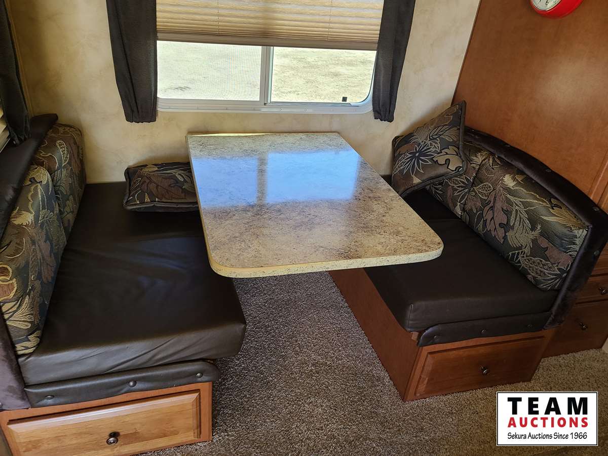 One slide out, dinette, fridge, stove, microwave, pullout couch, bathroom, queen bed, tv, stereo, lots of storage, power leveling jacks, power awning, A/C, 2 propane bottles, RV cover, 225/75R15