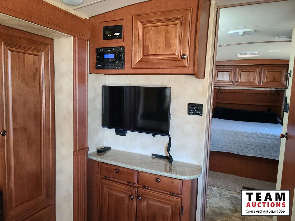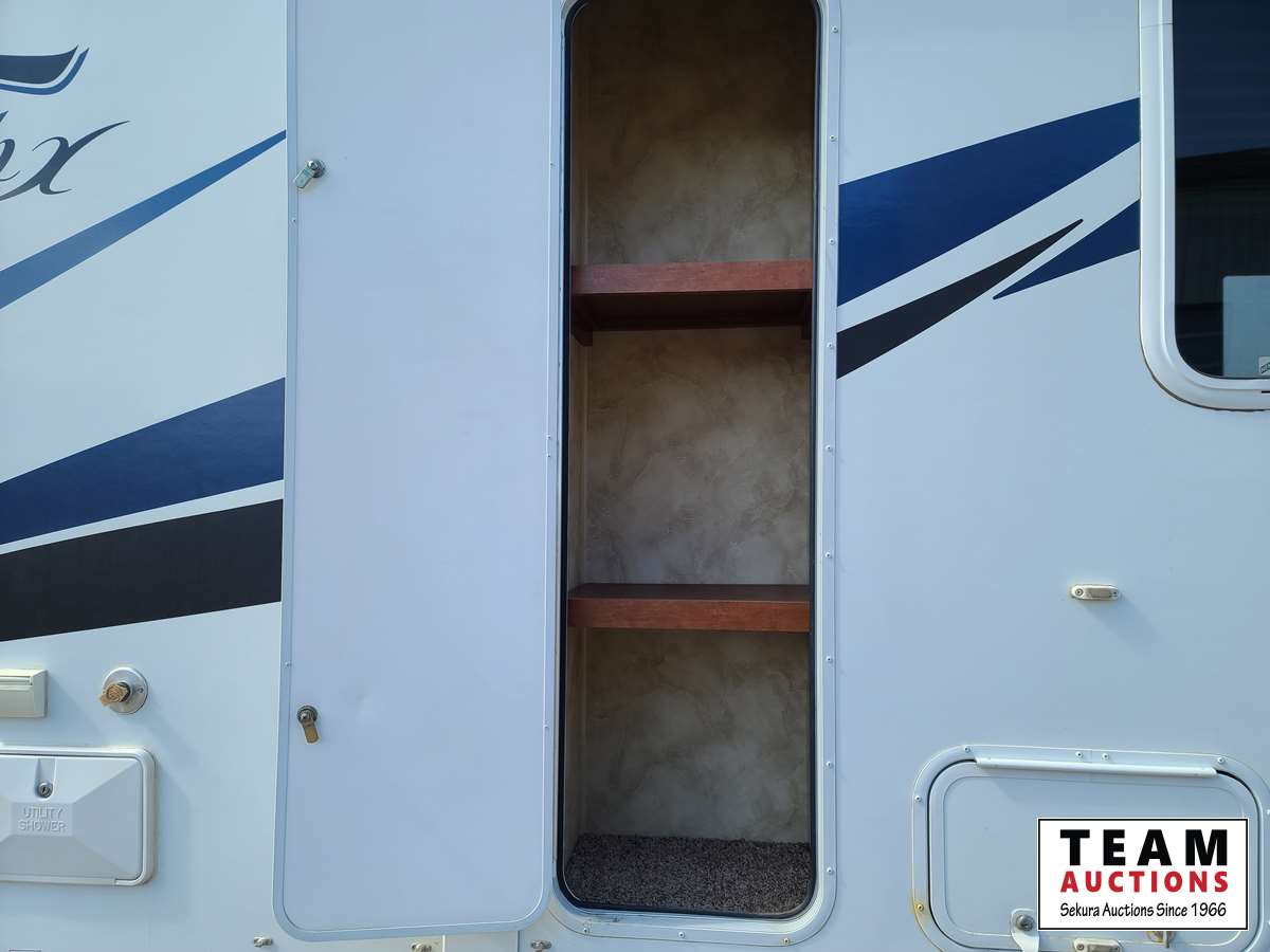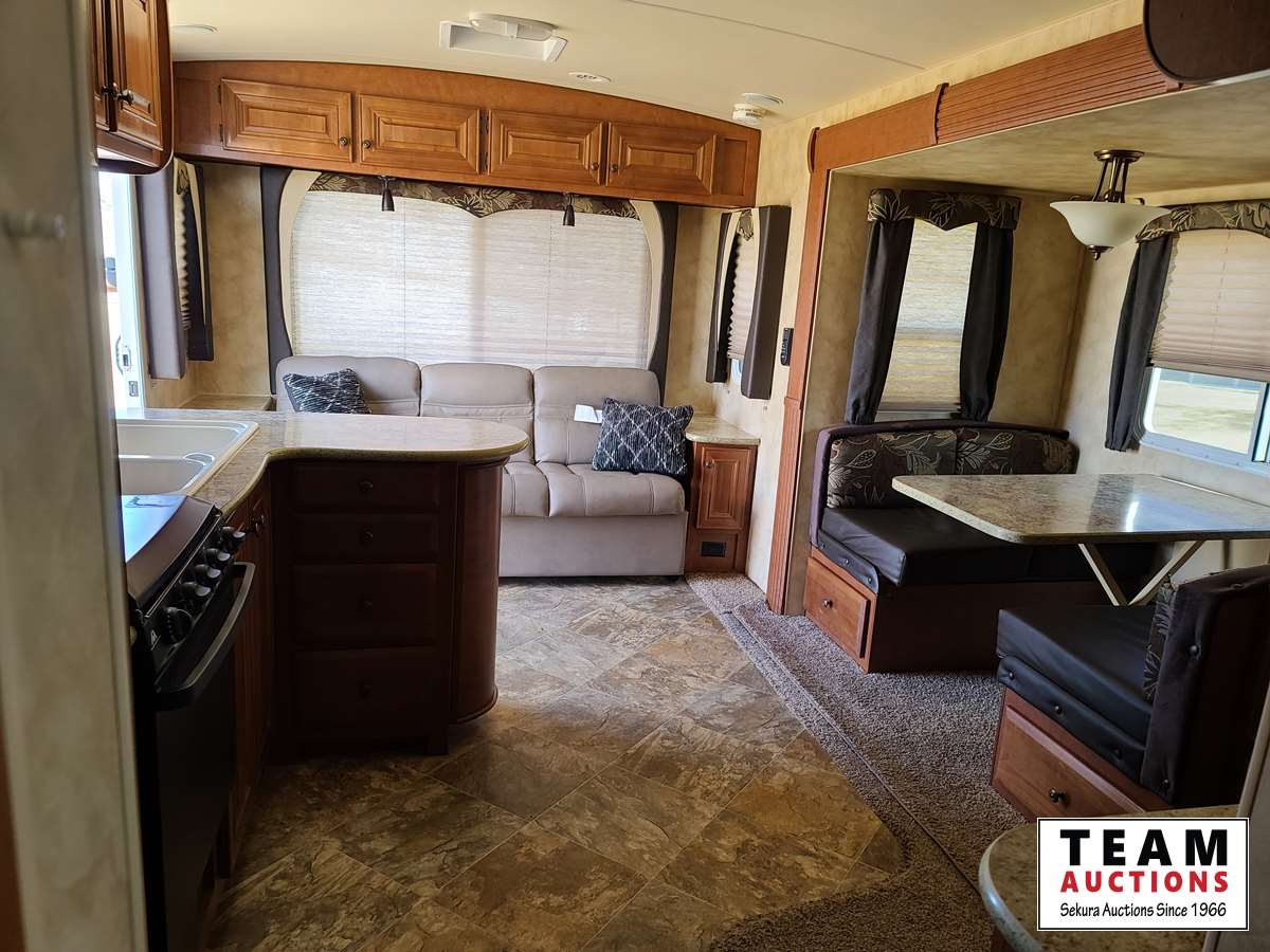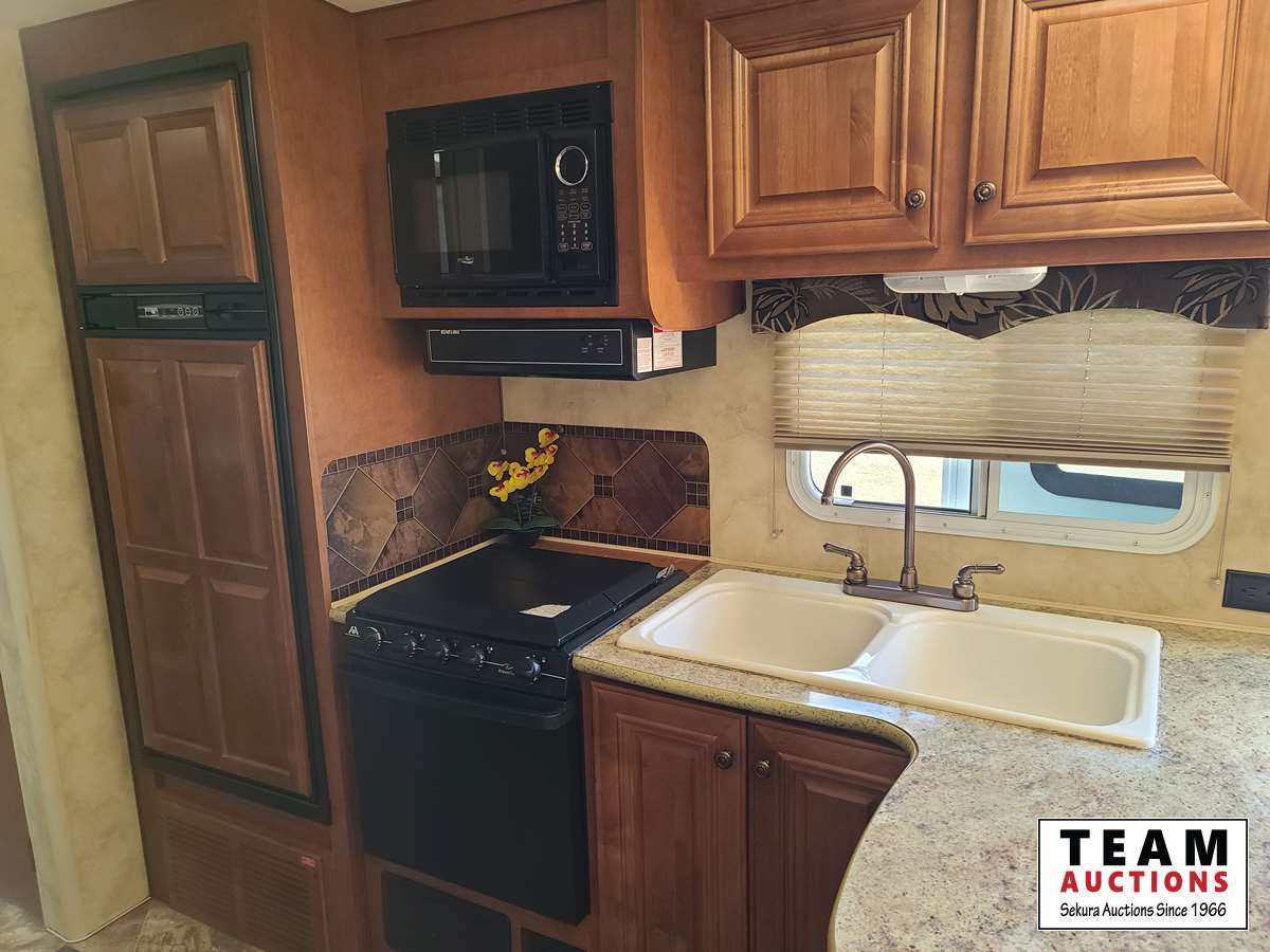 One slide out, dinette, fridge, stove, microwave, pullout couch, bathroom, queen bed, tv, stereo, lots of storage, power leveling jacks, power awning, A/C, 2 propane bottles, RV cover, 225/75R15