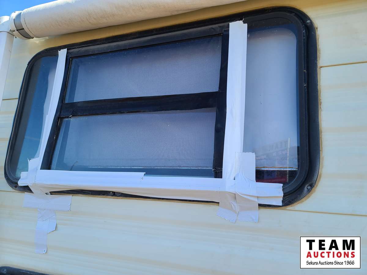 Water leak in rear ceiling. One window and fridge door need repair. Electrical works, gas and water not tested.