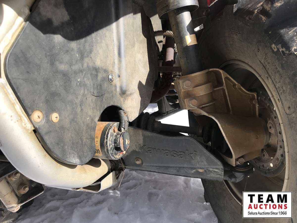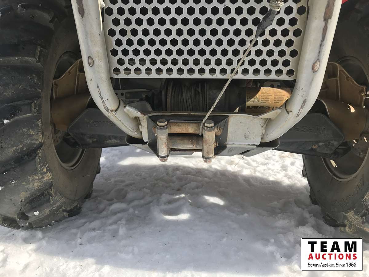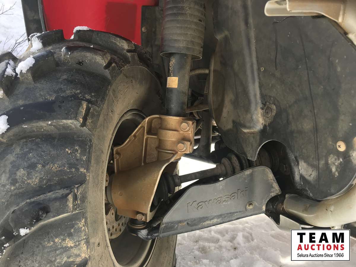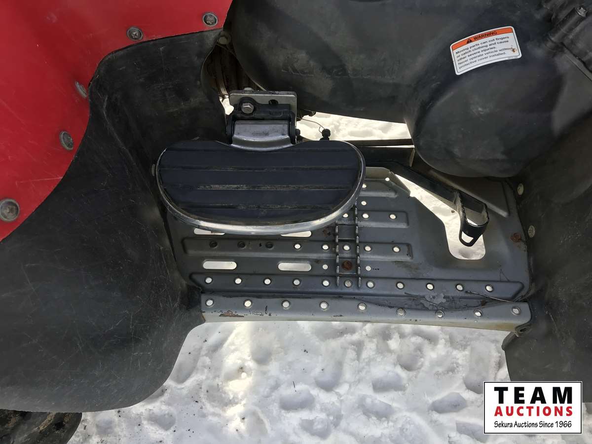 2WD & 4WD selectable, reverse, K-EBC engine brake control, 2000 lb free spooling winch, heated hand and thumb warmers, front rack, buddy seat with foot rests, reverse speed over ride for faster reverse, 27 X 11-12