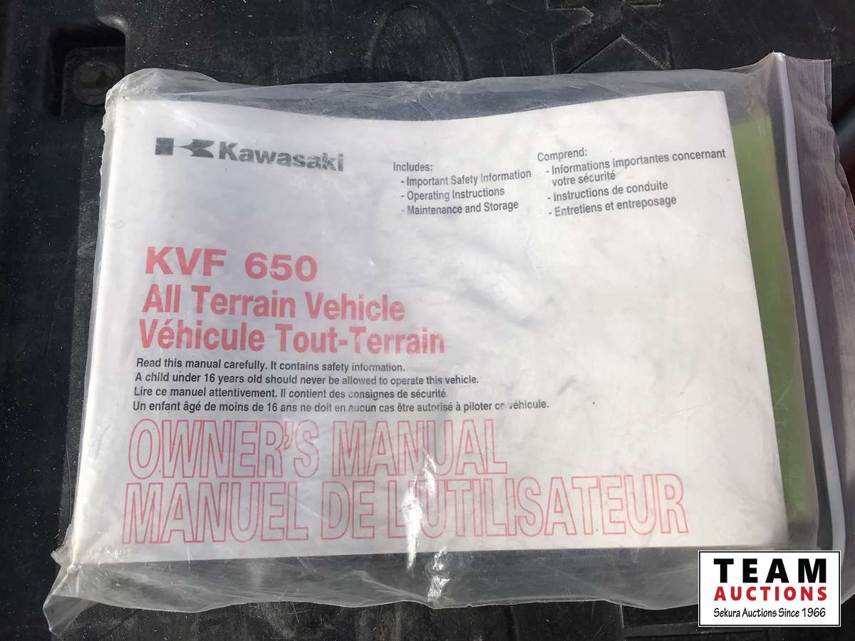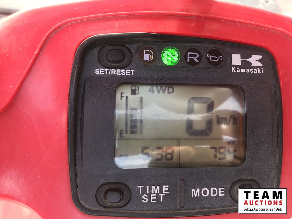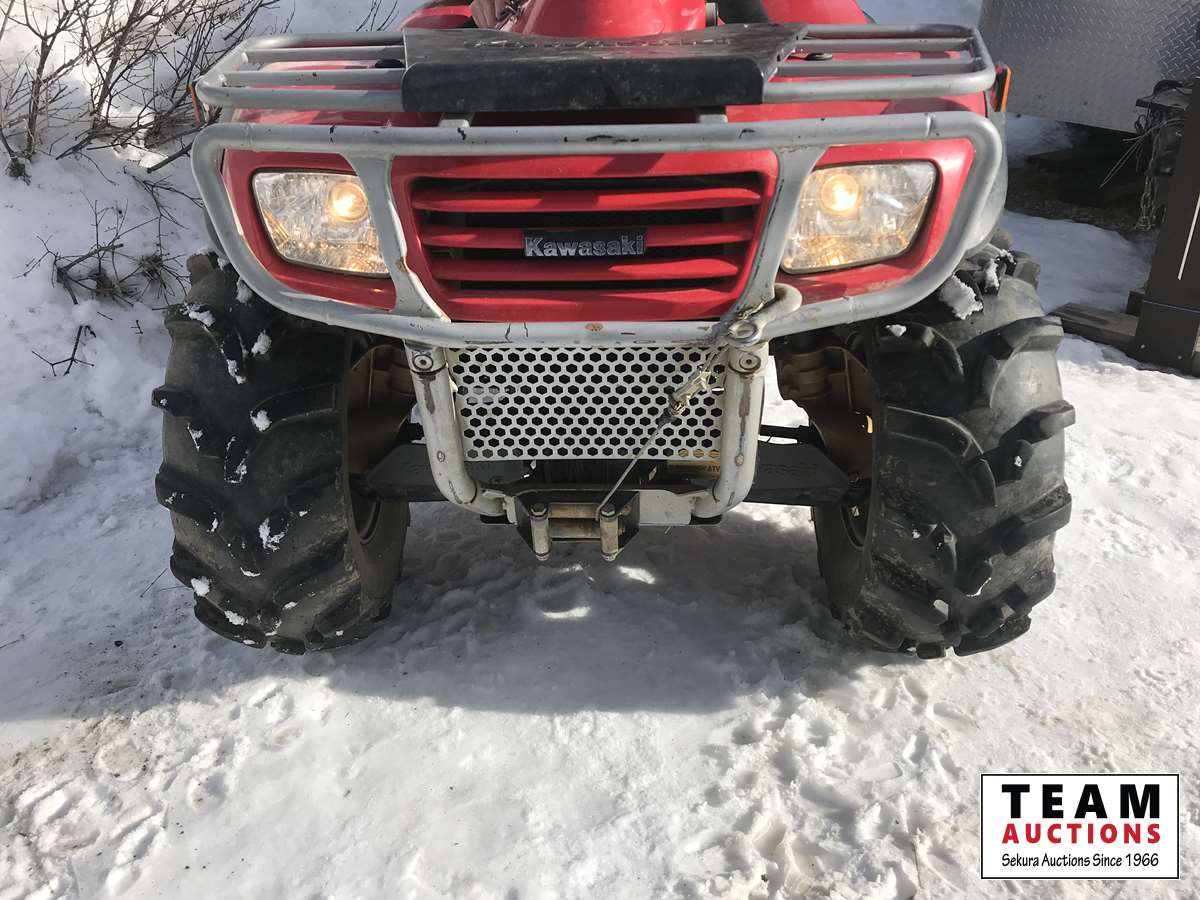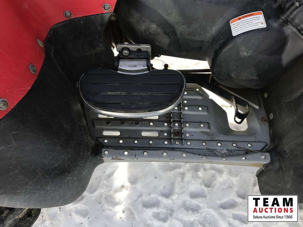 2WD & 4WD selectable, reverse, K-EBC engine brake control, 2000 lb free spooling winch, heated hand and thumb warmers, front rack, buddy seat with foot rests, reverse speed over ride for faster reverse, 27 X 11-12