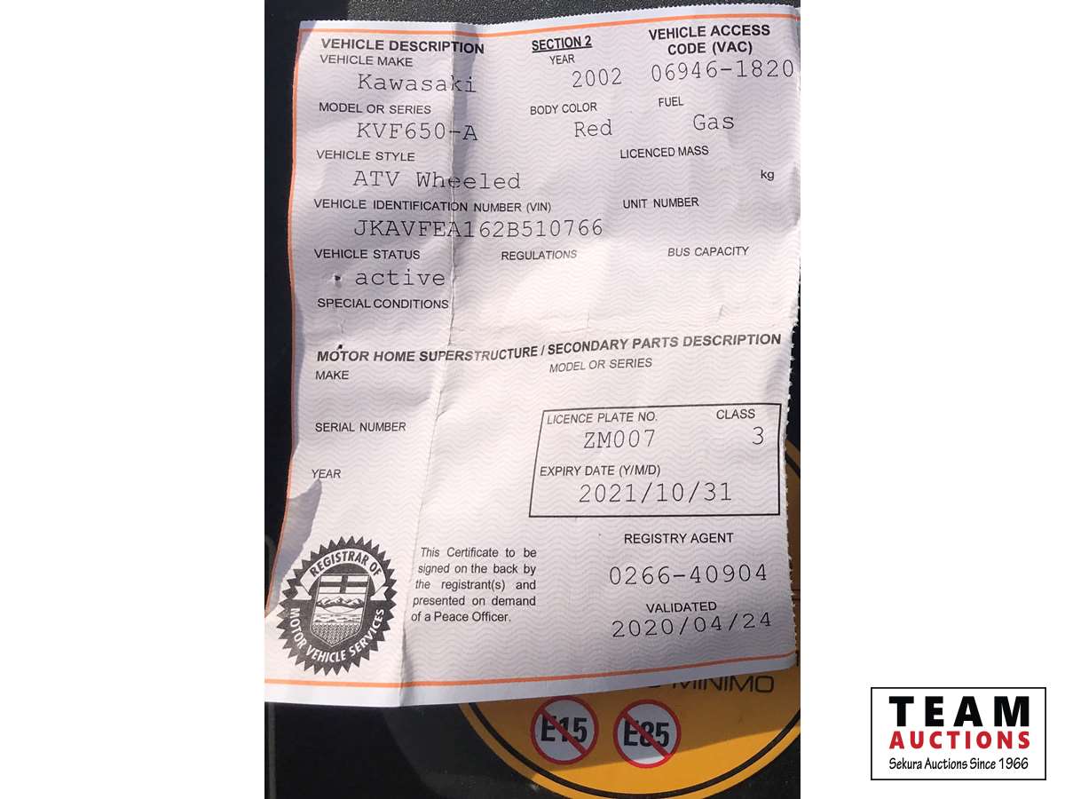 592 2002 Kawasaki Prairie 650 V Twin 4X4 Quad