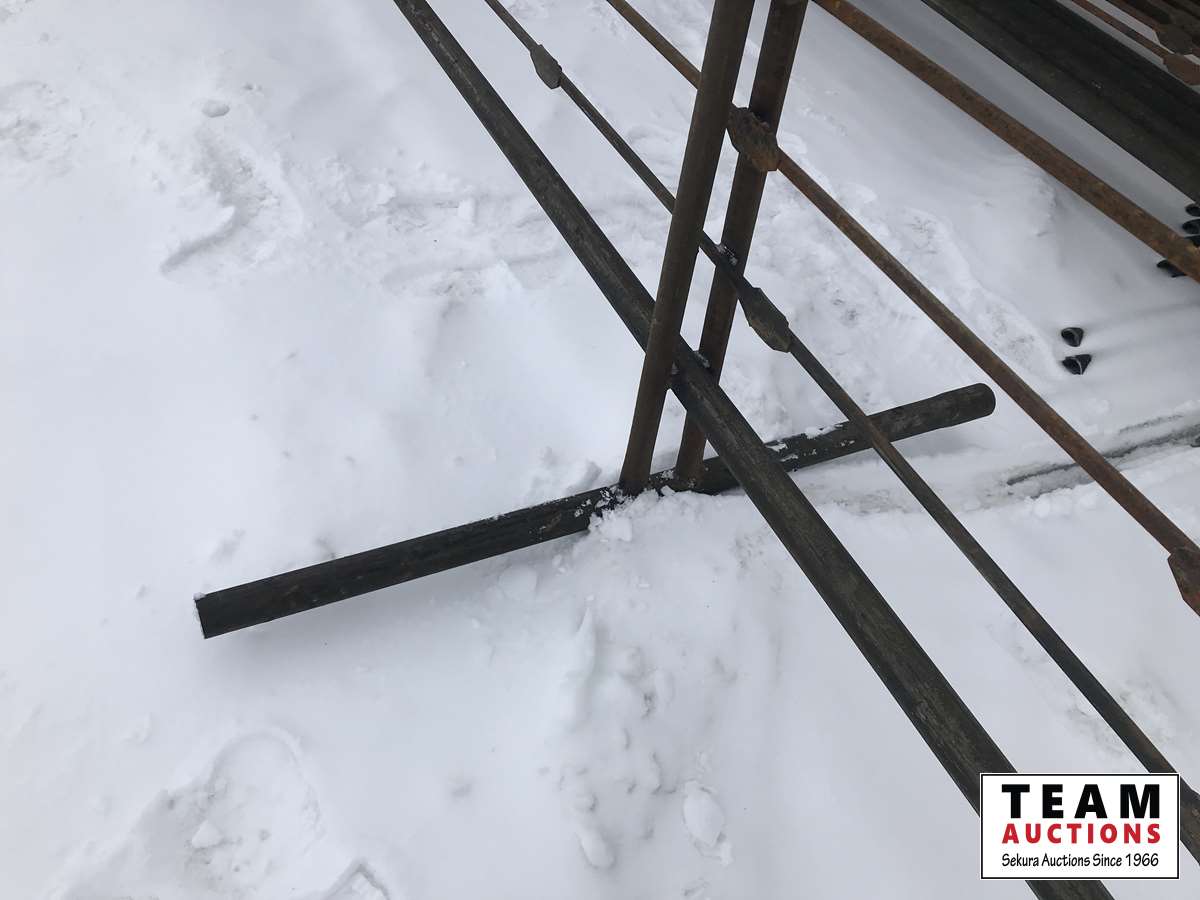 2 inch pipe frame, (6) 5/8 inch sucker rod rails, (2) 1/4 x 26 inch chrome chains on one end