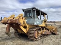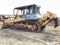 Factory cab, full canopy, Ac, Heat, C- Frame dozer blade with twin tilts, Komatsu model DRP100-3 riper with 3 shanks, new batteries