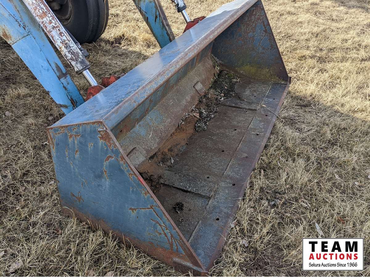 Allied 760 loader, 6 ft bucket, diesel engine, cab, 12 speed partial power shift transmission, (2) rear hydraulic outlets, 540/1000 PTO, 11.00-16 front & 18.4-38 rear