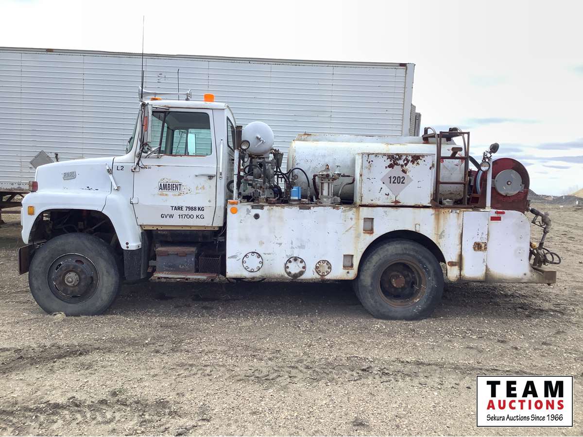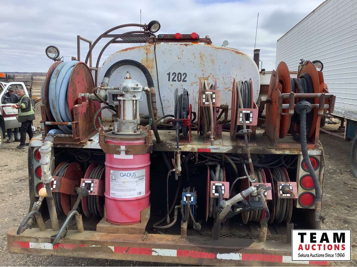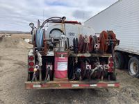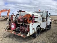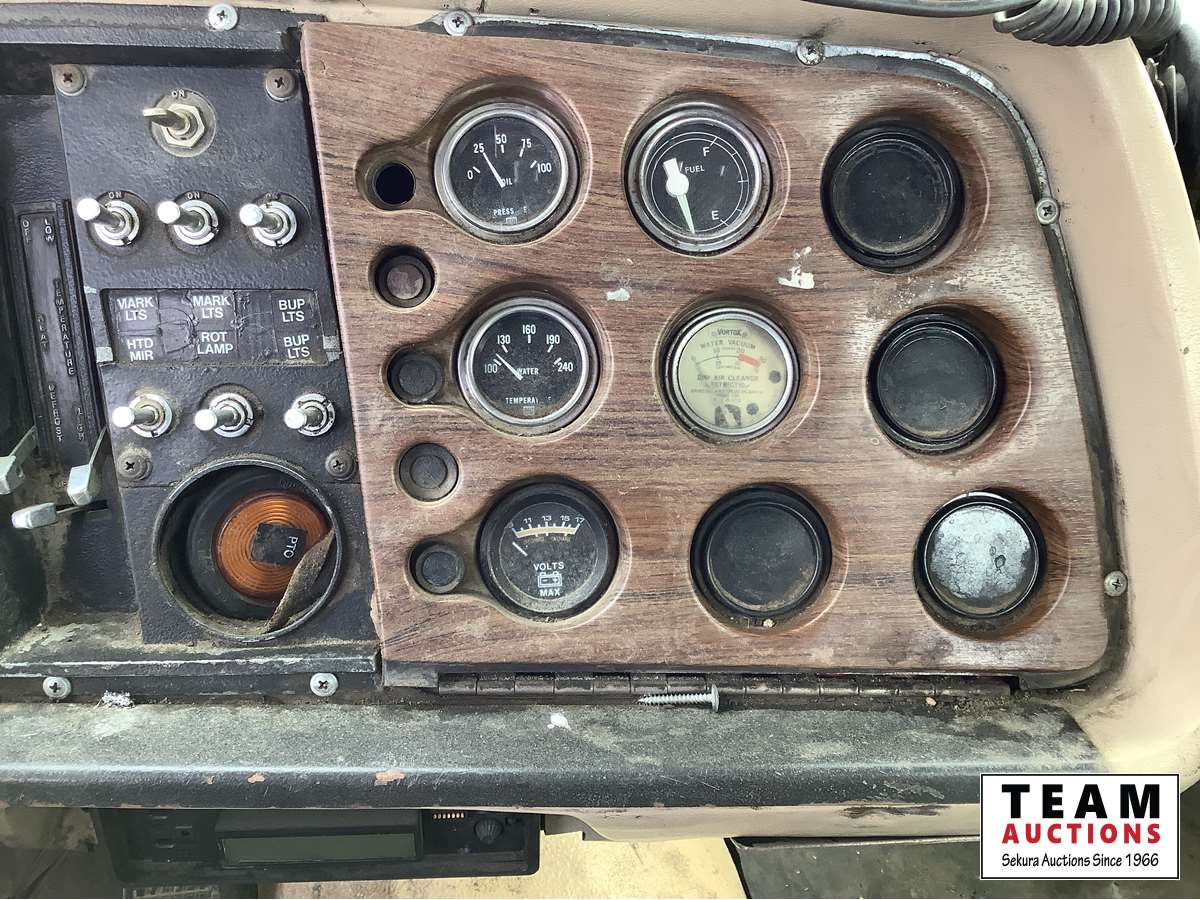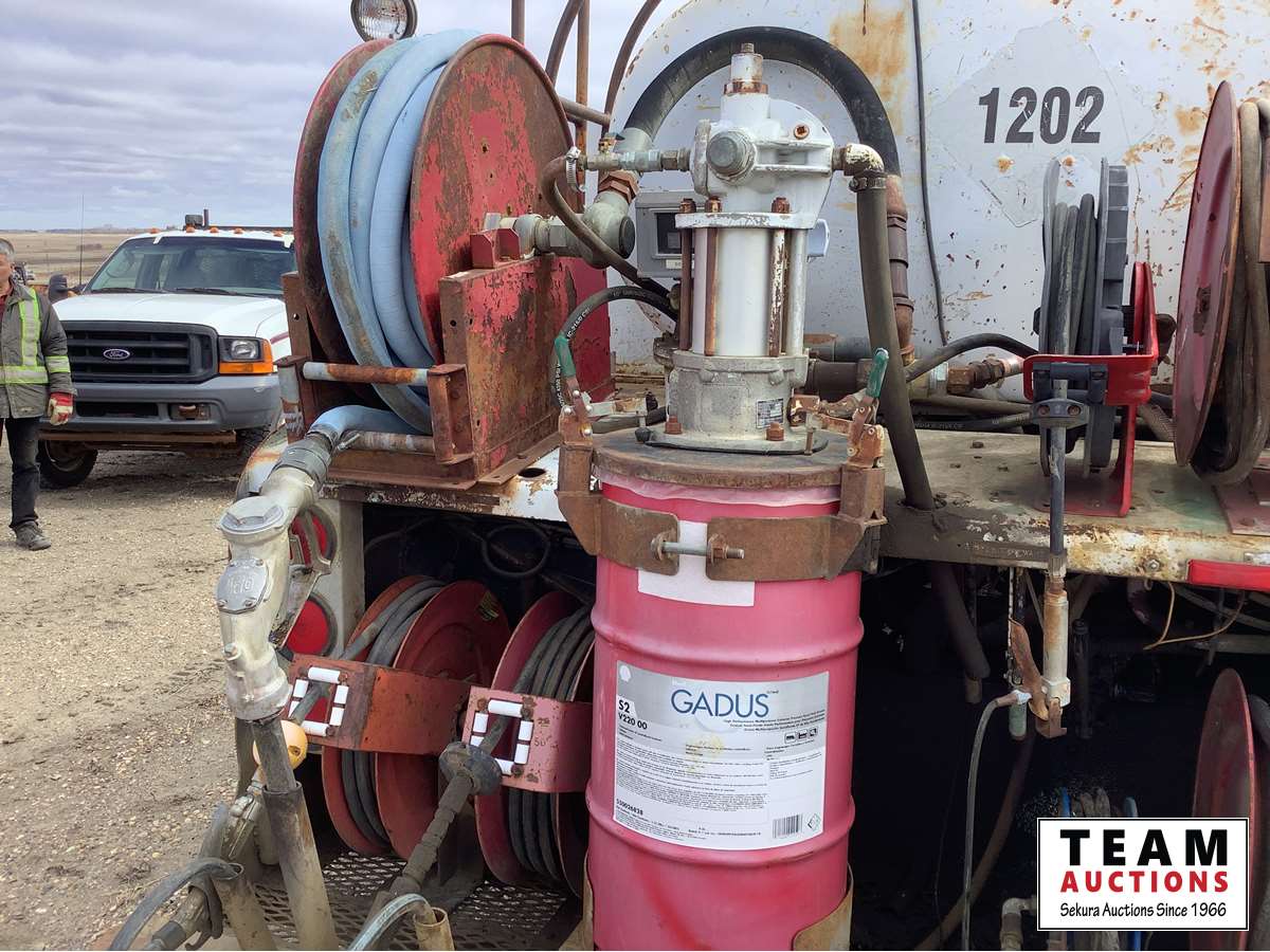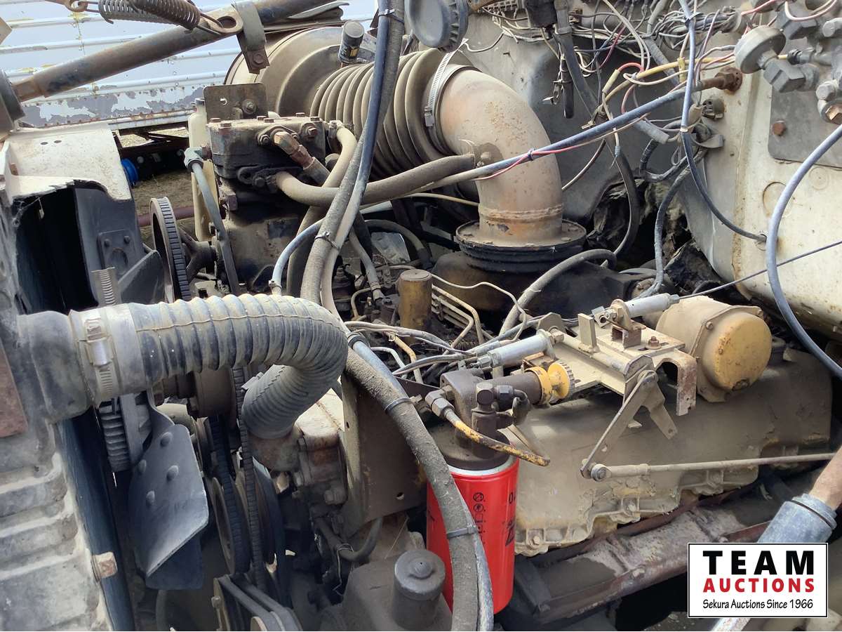 Caterpillar 3208, 10 speed transmission, air brakes, has a steel fuel storage tank with pump and hose real, has a rear mounted air greaser with one line hooked to the pump, PTO drive twin cylinder air compressor,air tank, 10x20