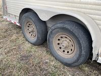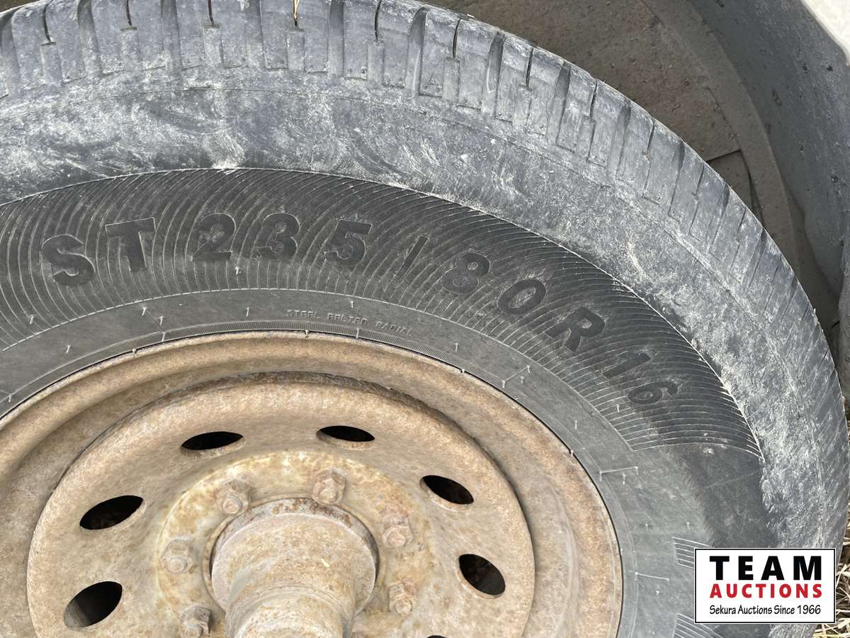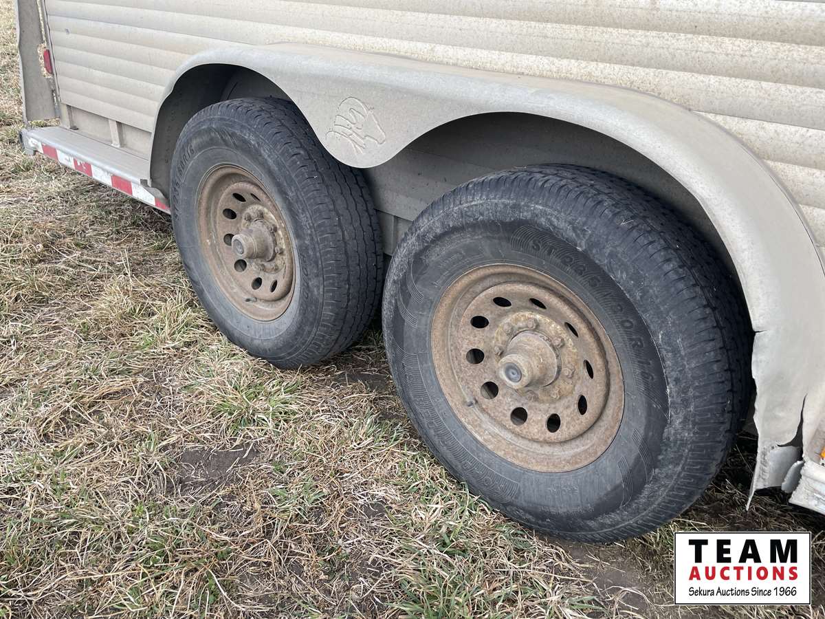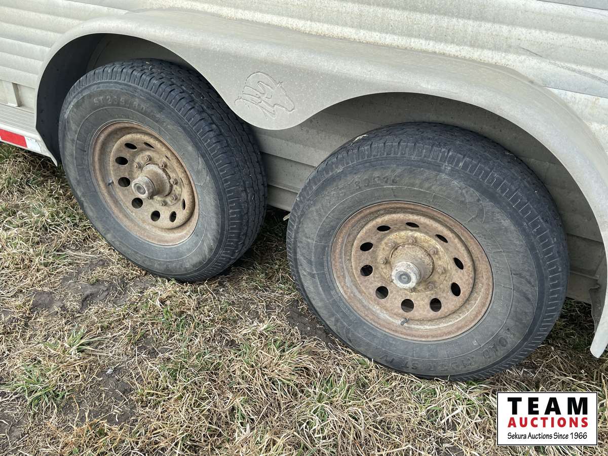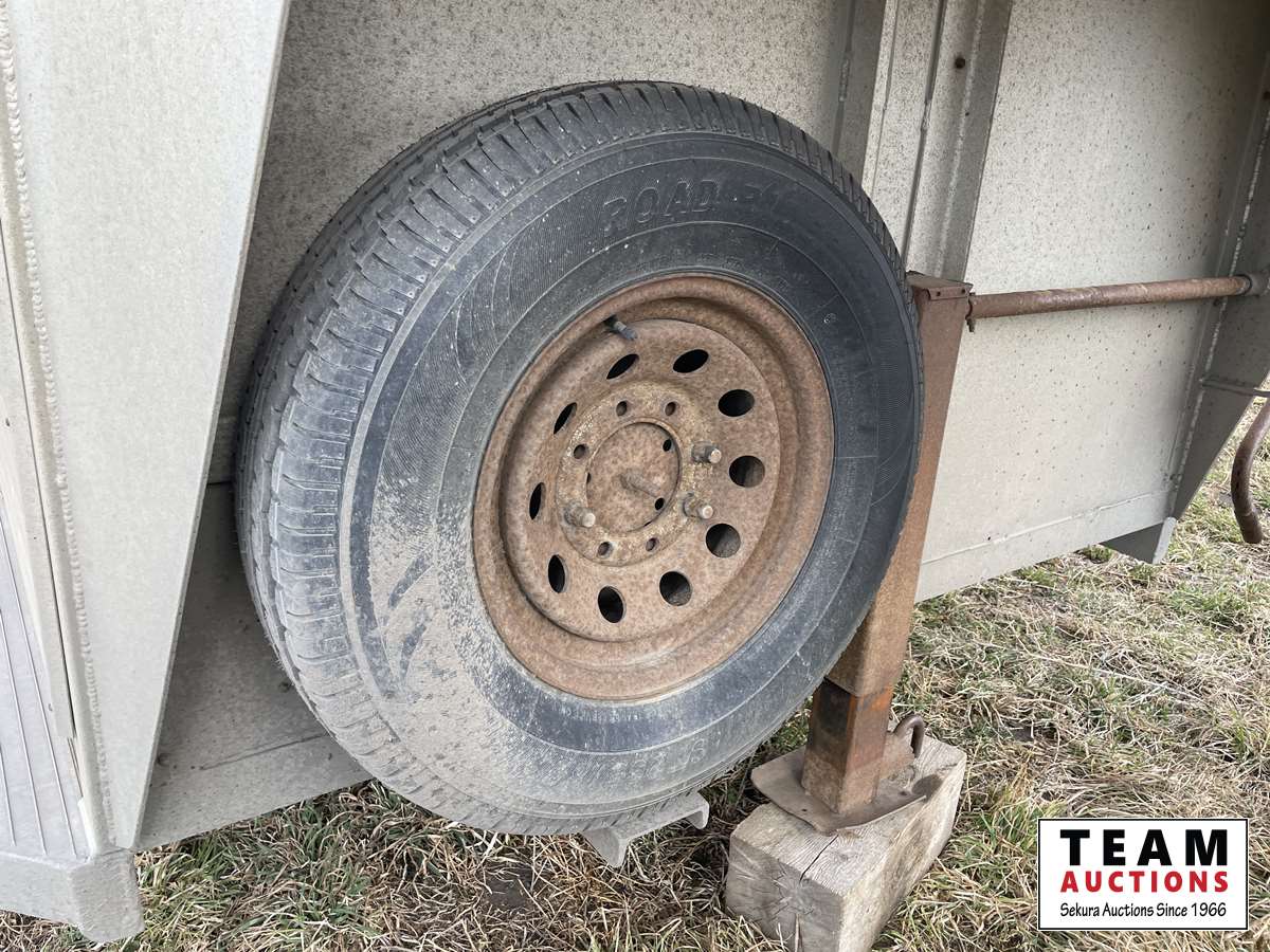 7 ft wide, full swing rear door, side man door, 7000 lb axles, storage area, divider, spare tire, ST235/80R16