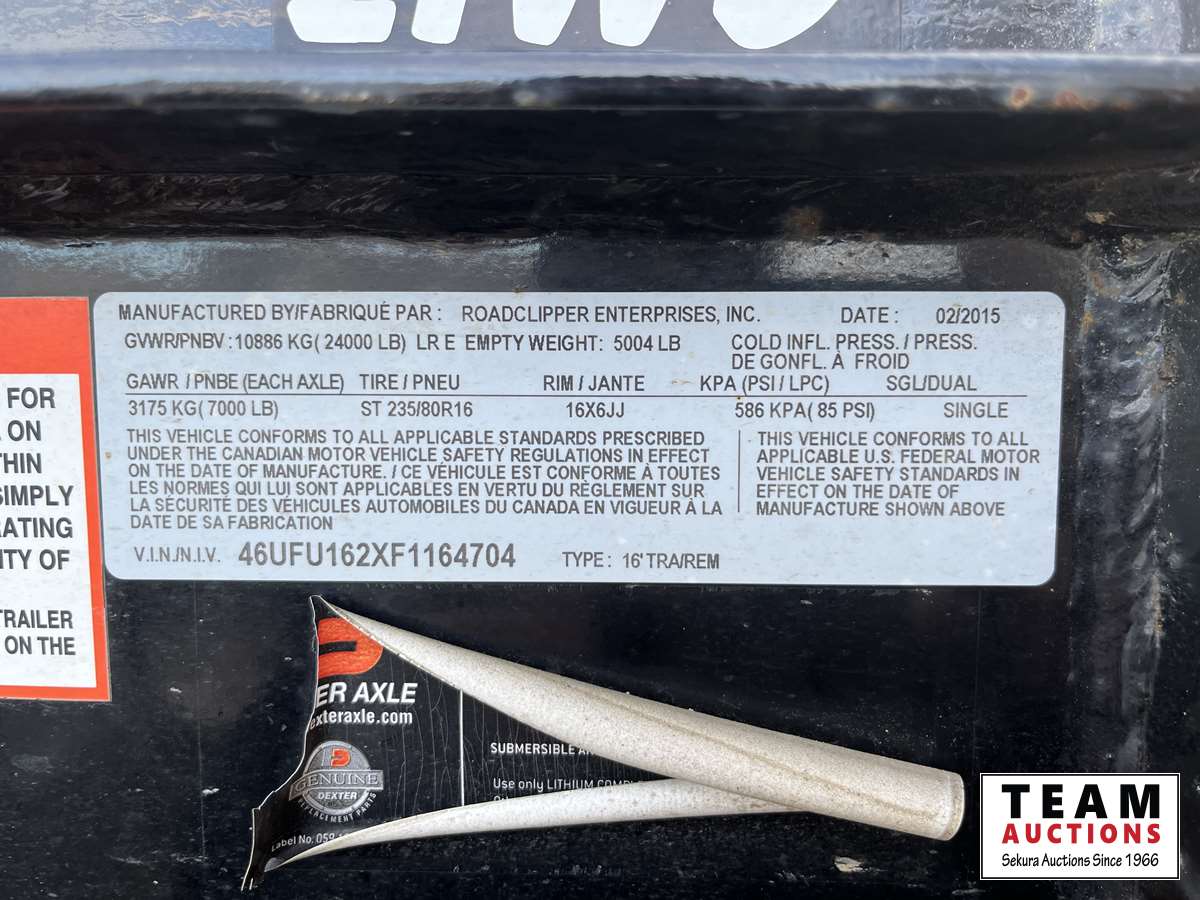 74 2015 Roadclipper 21WD 16 Ft TRI/A Gooseneck Dump Trailer