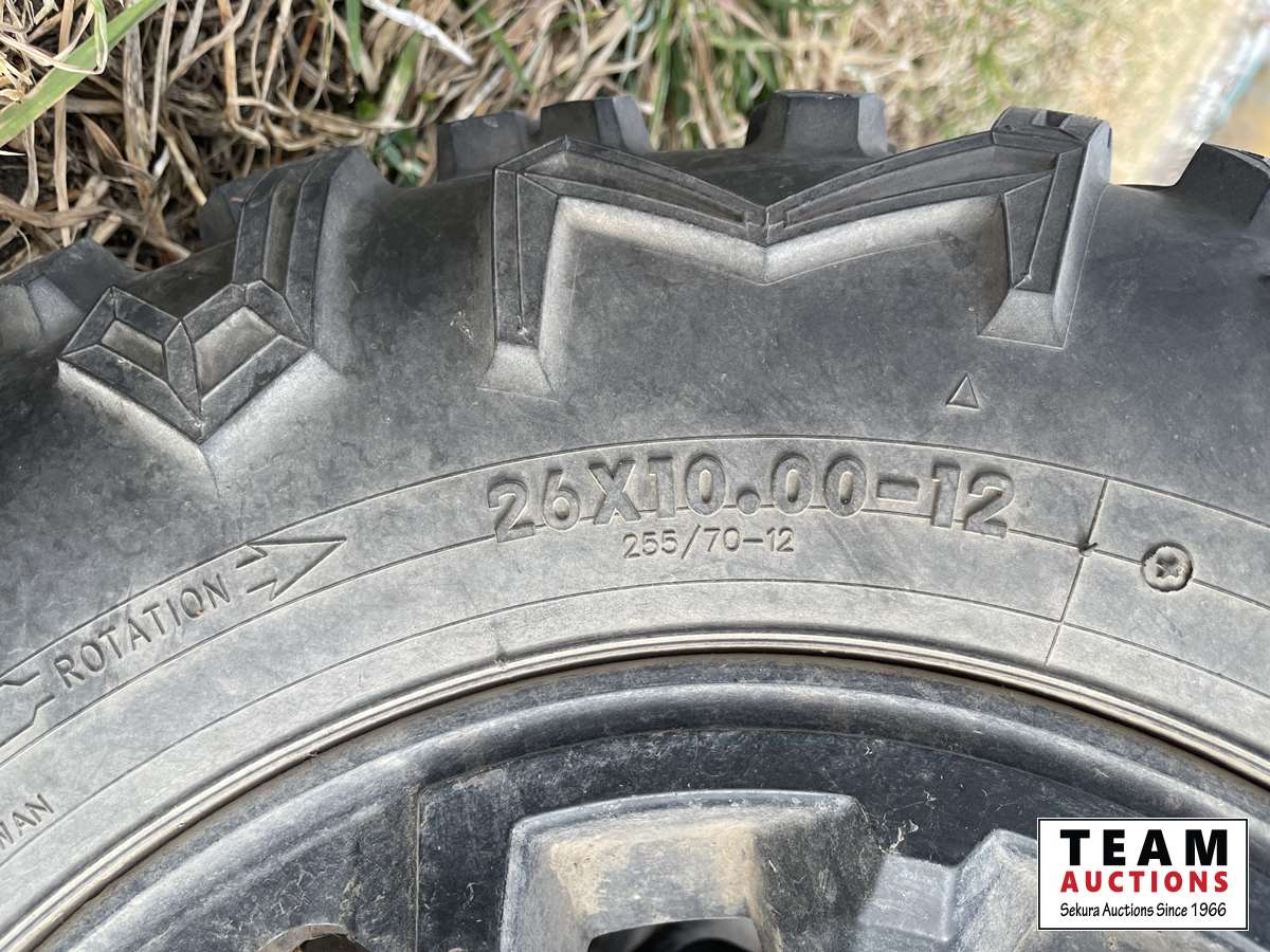 850 cc, automatic transmission, half windshield, doors, manual dump box, 26x8.00-12 frt, 26x10.00-12 rear