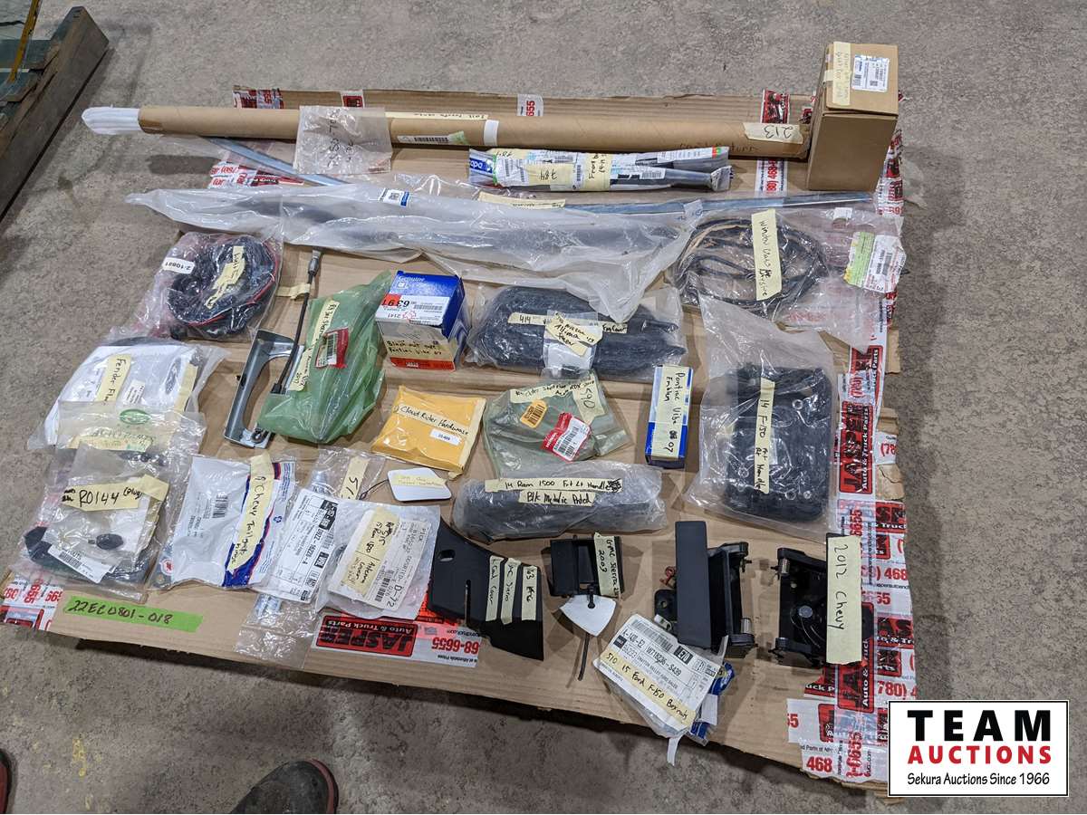 2012 Chev hinges, 2015 Ford box nuts, 2013 GMC cowl cover, 2015 Ram antenna cover, Chev tailgate hinges, 2016 Ford F150 head light bracket, fender flare kit, light bar harness, 2013 Venza right front moulding, 2014-19 front bumper brackets, 2017 Acura RDX right inner and right outer tie rod ends, plus much more