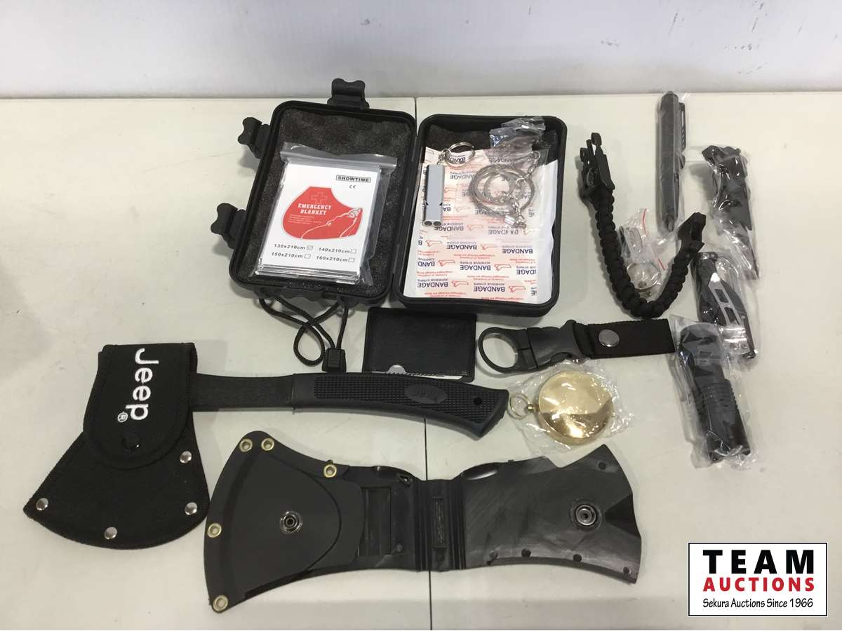 2595 Jeep Hatchet & First Aid Kit (Unused)