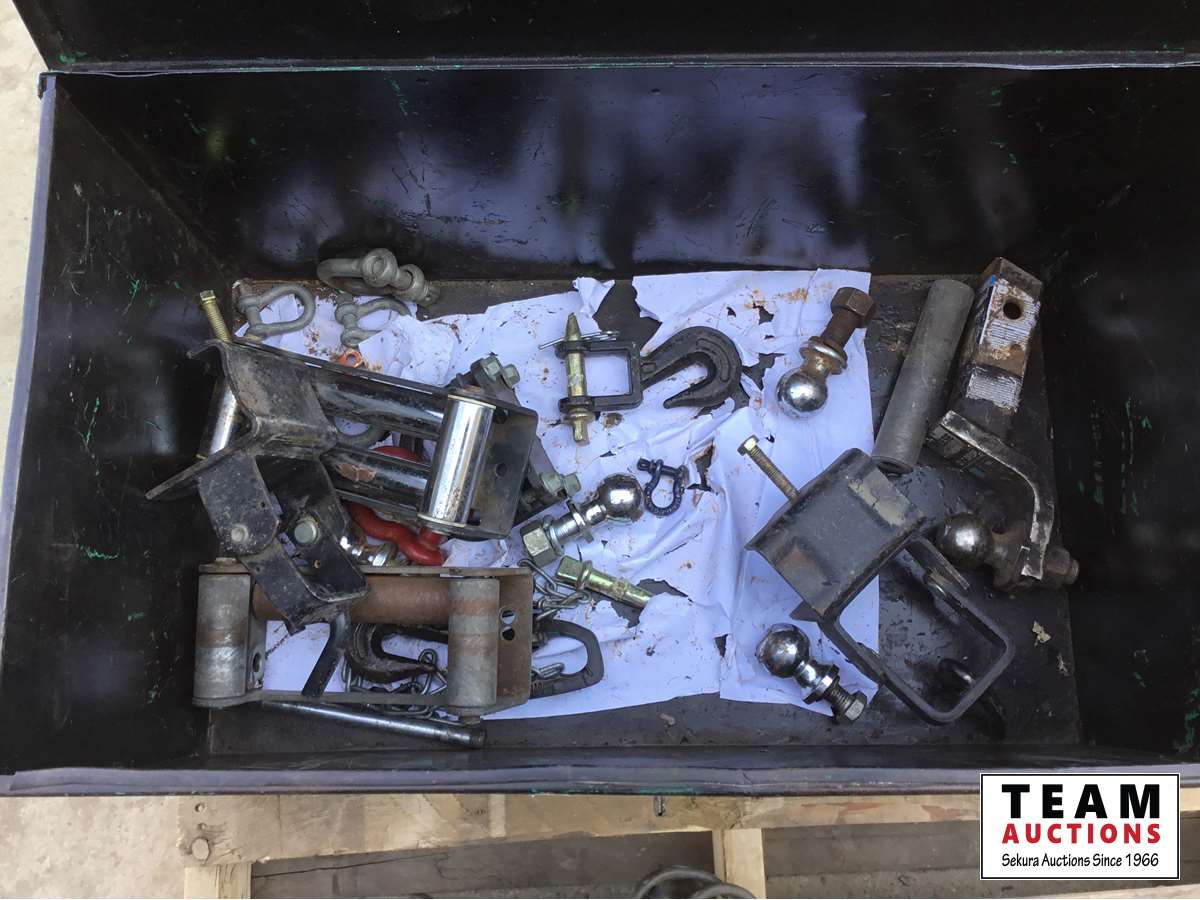 Receiver hitch, cables guides, hooks, trailer ball, miscellaneous items