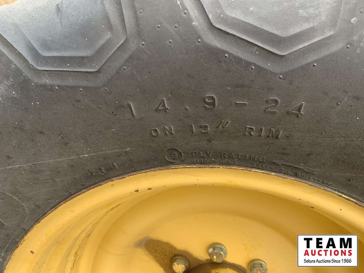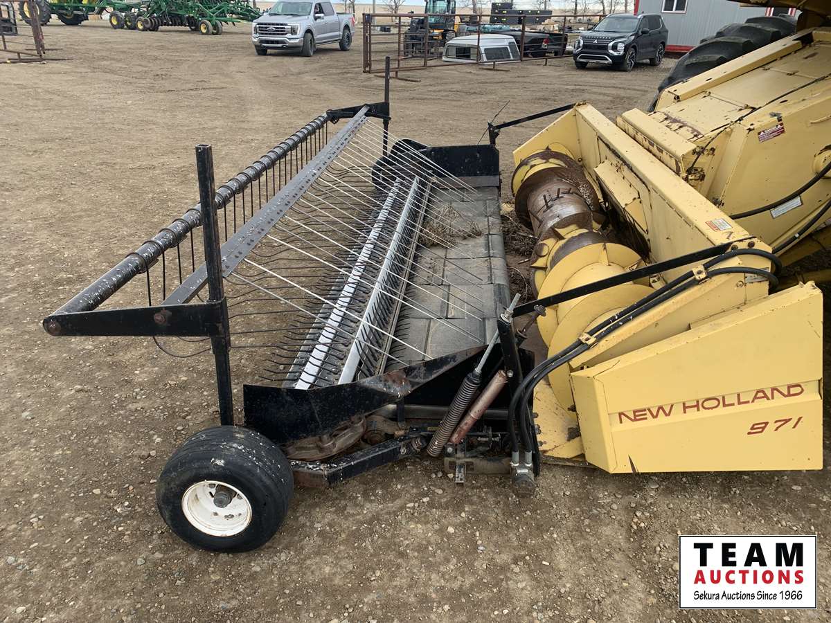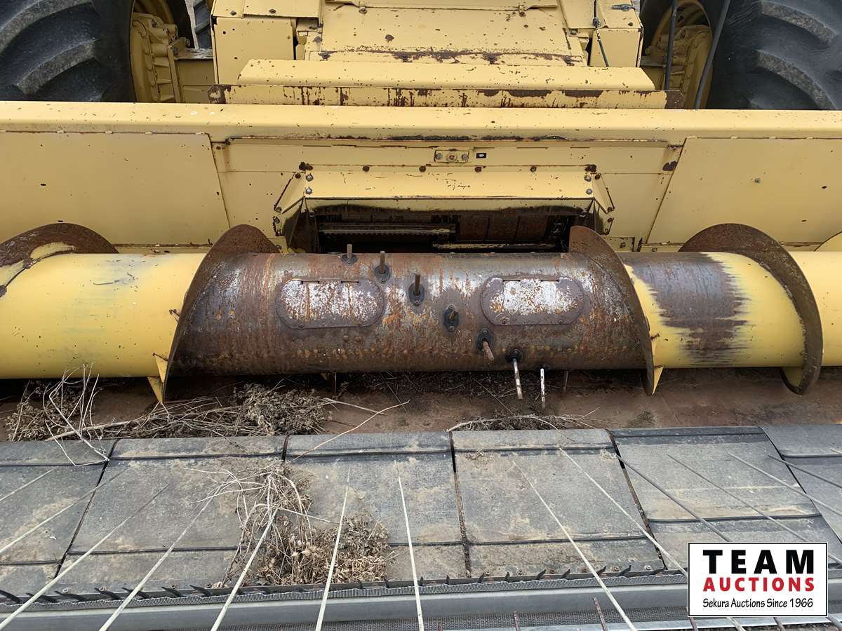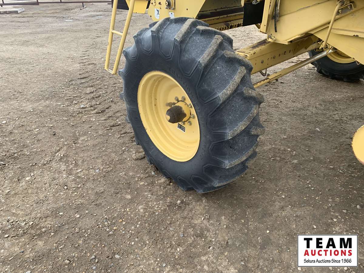 13 ft 971 pickup header, rocktrap, reverser, variable speed reel, fore & aft, reverser, fine cut chopper, chaff spreader, 30.5 L -32 front, 14.9-24 rear