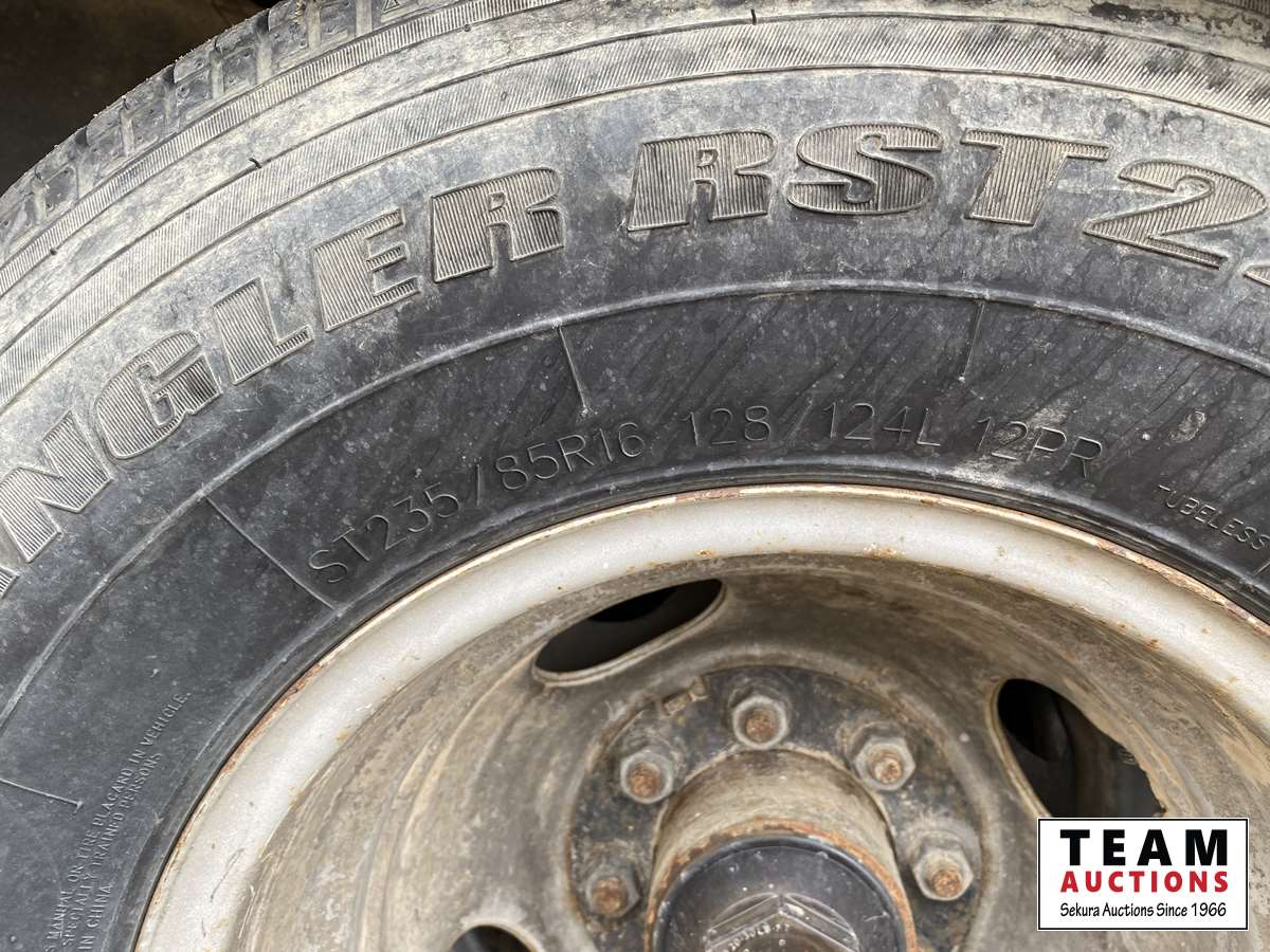 96 inch wide, 12000 lb axles, air ride suspension, chain rack, side tool box, top deck, 235/85R16