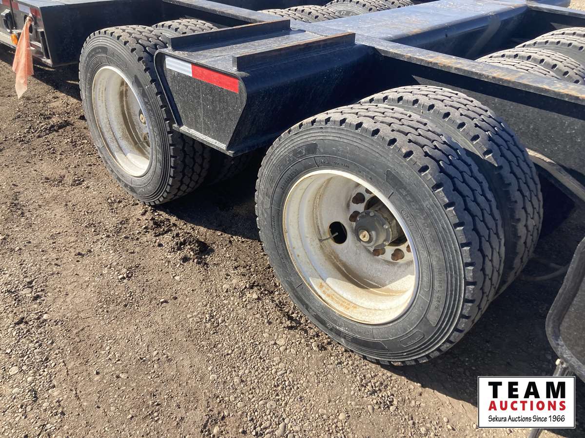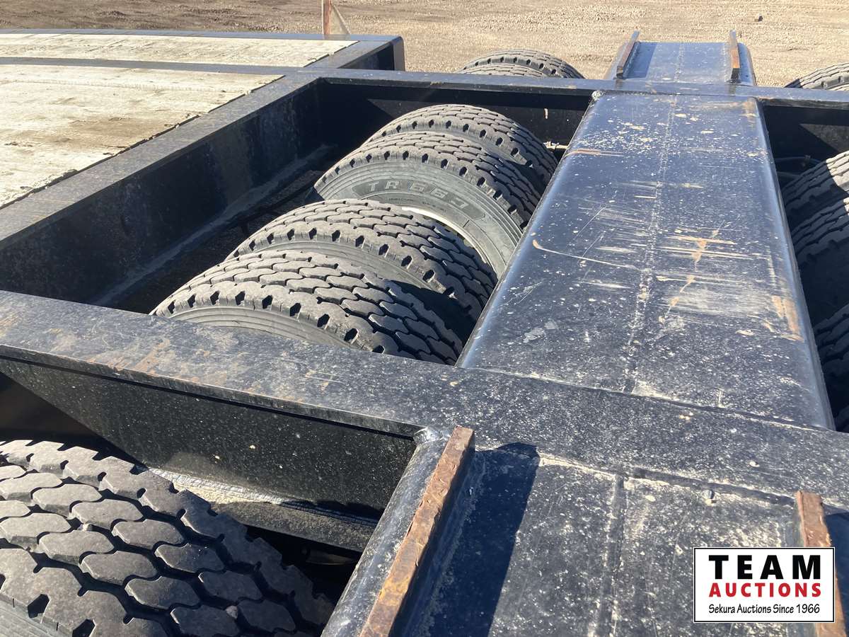 12 ft wide, 28 ft deck, walking beam suspension, 275/70R22.5, will have new cvip