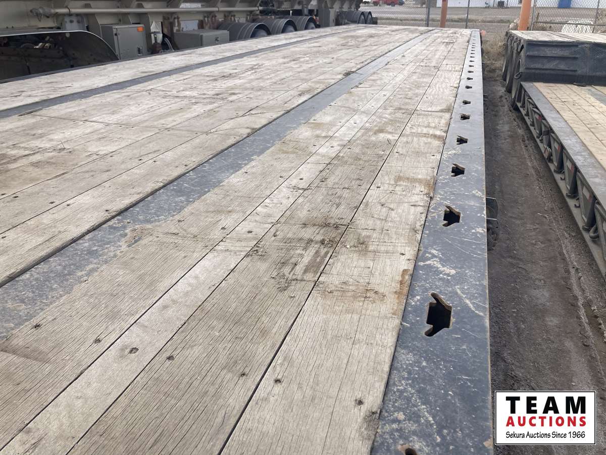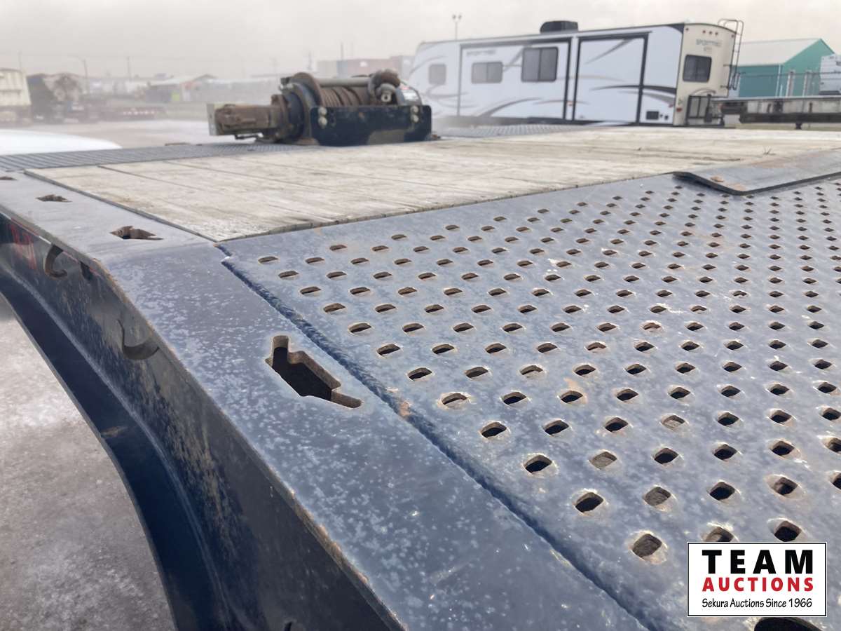 Hydraulic sliding axle, 9 ft 6 inch neck, 43 ft 6 inch deck, 10 ft wide, front winch, 20,000 lb axles, air ride suspension, aluminum wheels, 255/70R22.5
