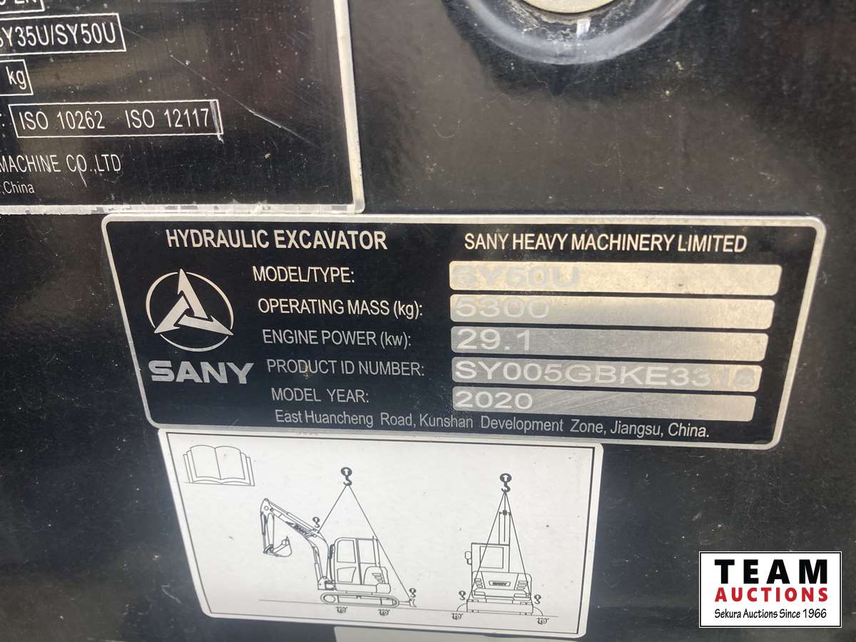 445 2020 Sany SY50U 6 Ton Midi Excavator