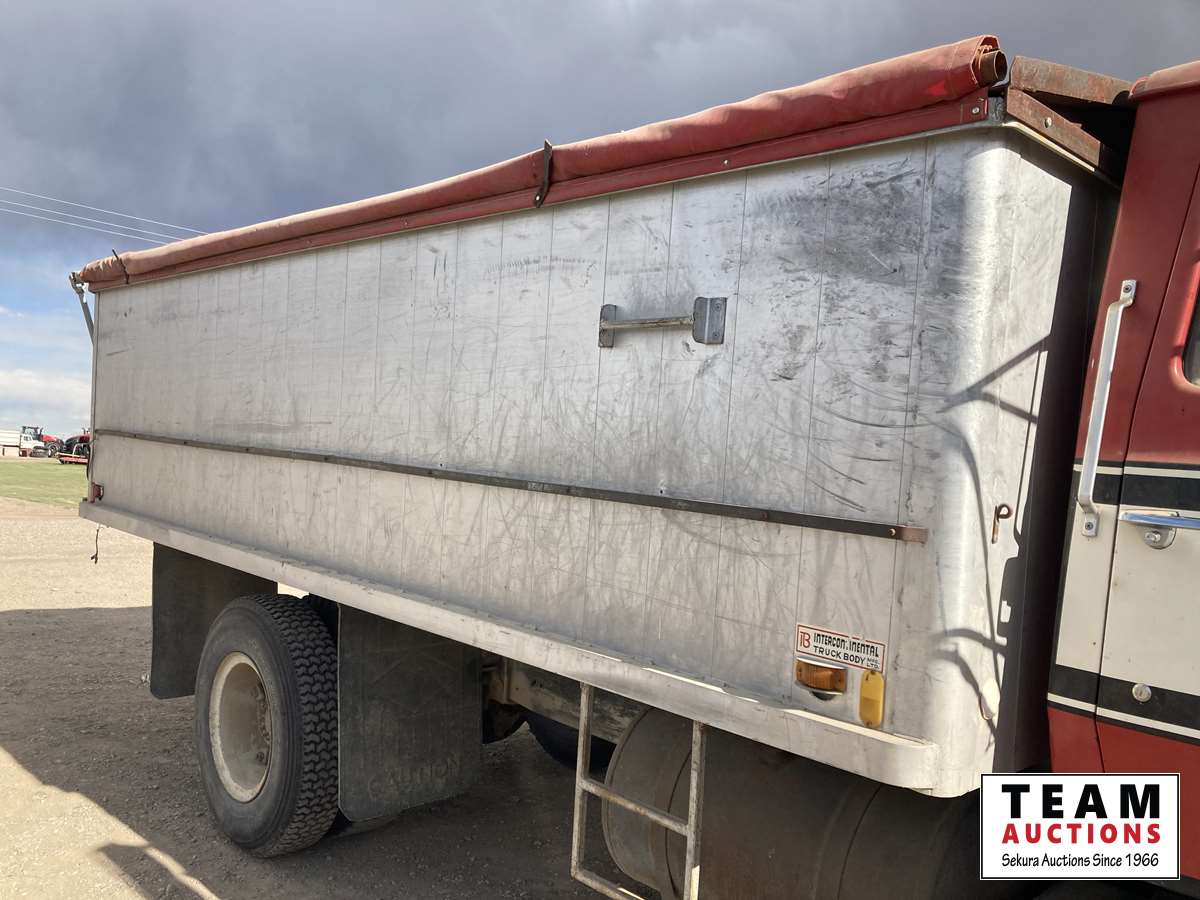V8 gas, 5 x 2 transmission, International Grain Box, drill fill, spring suspension, 10.00R20