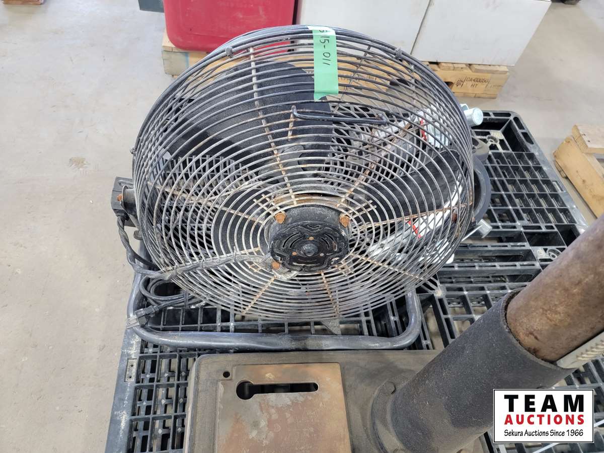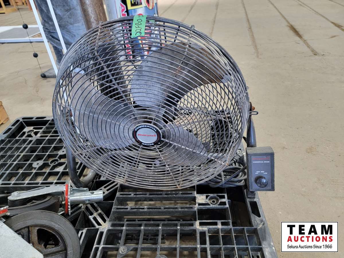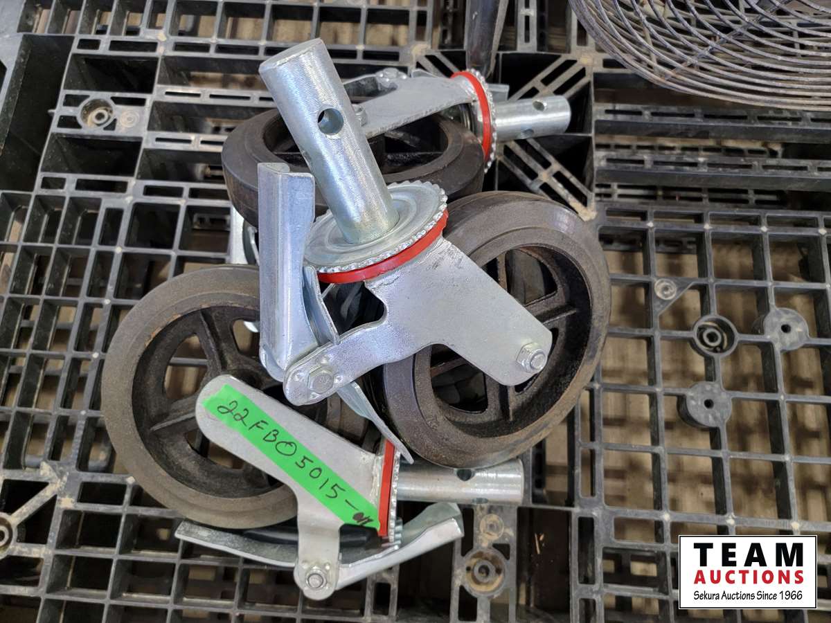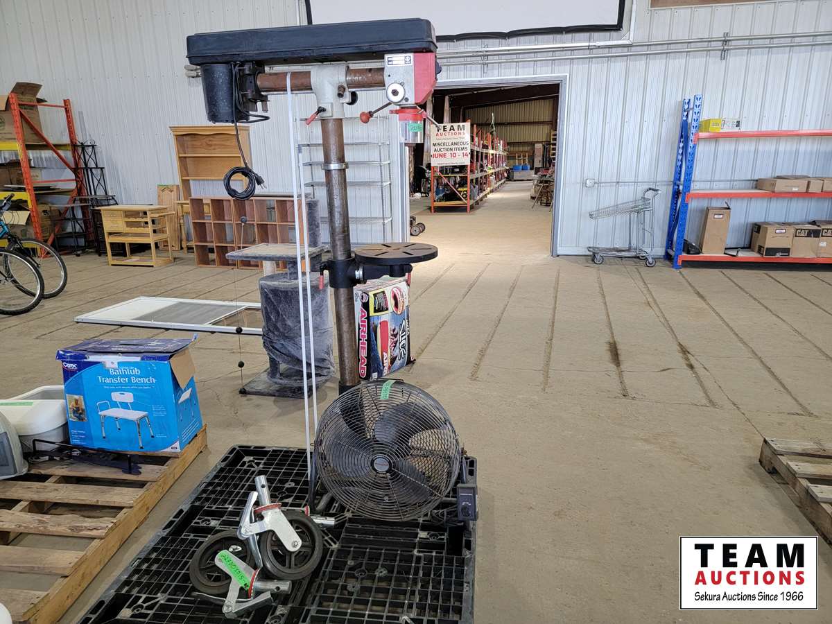 1247 (4) Industrial Scaffolding Wheels, Honeywell Fan and Canwood Drill Press