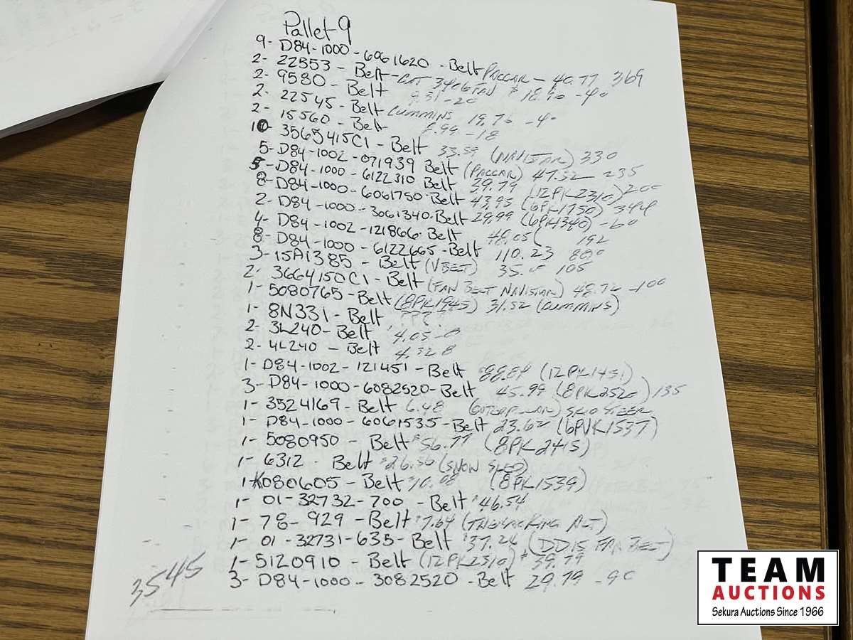1383 Assorted Belts, Bearings & Seals