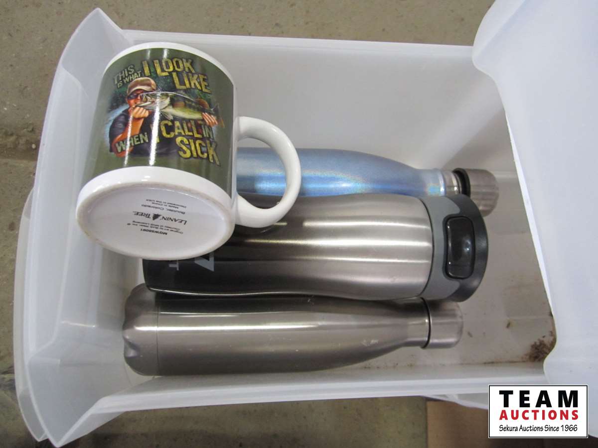 Mugs, plastic drawer, binoculars, etc.