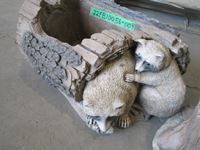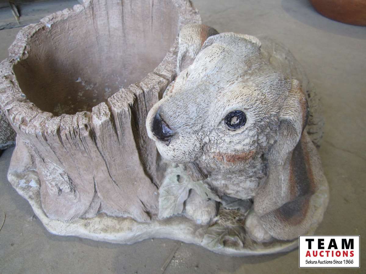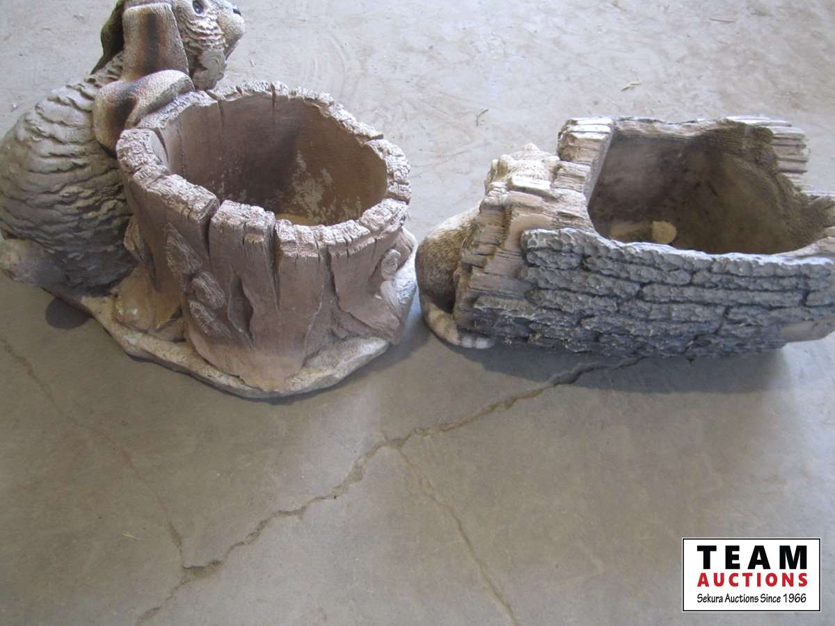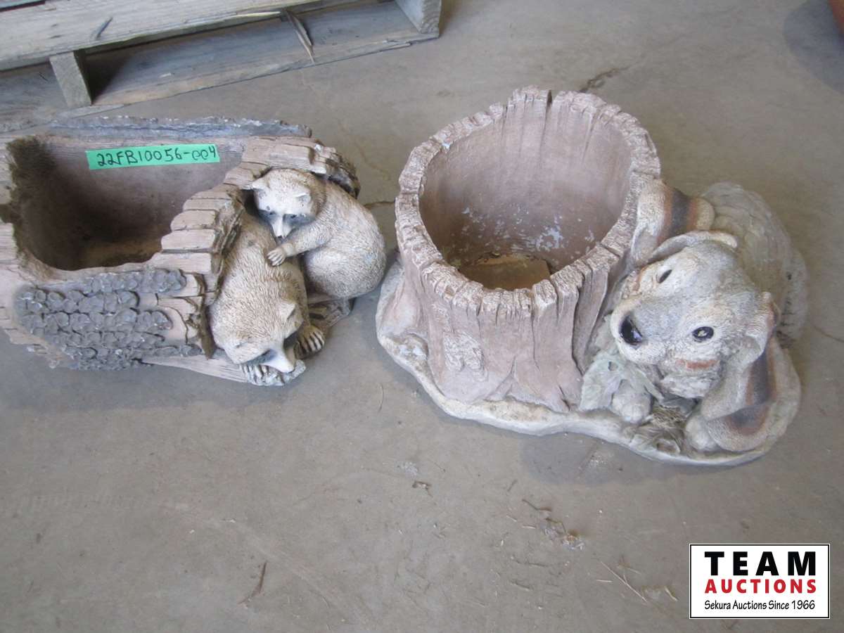 1259 Cement Rabbit and Raccoon Planters