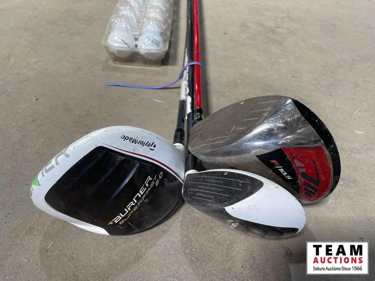 (1) TaylorMade driver, (1) Nike driver, (1) 3 wood hybrid