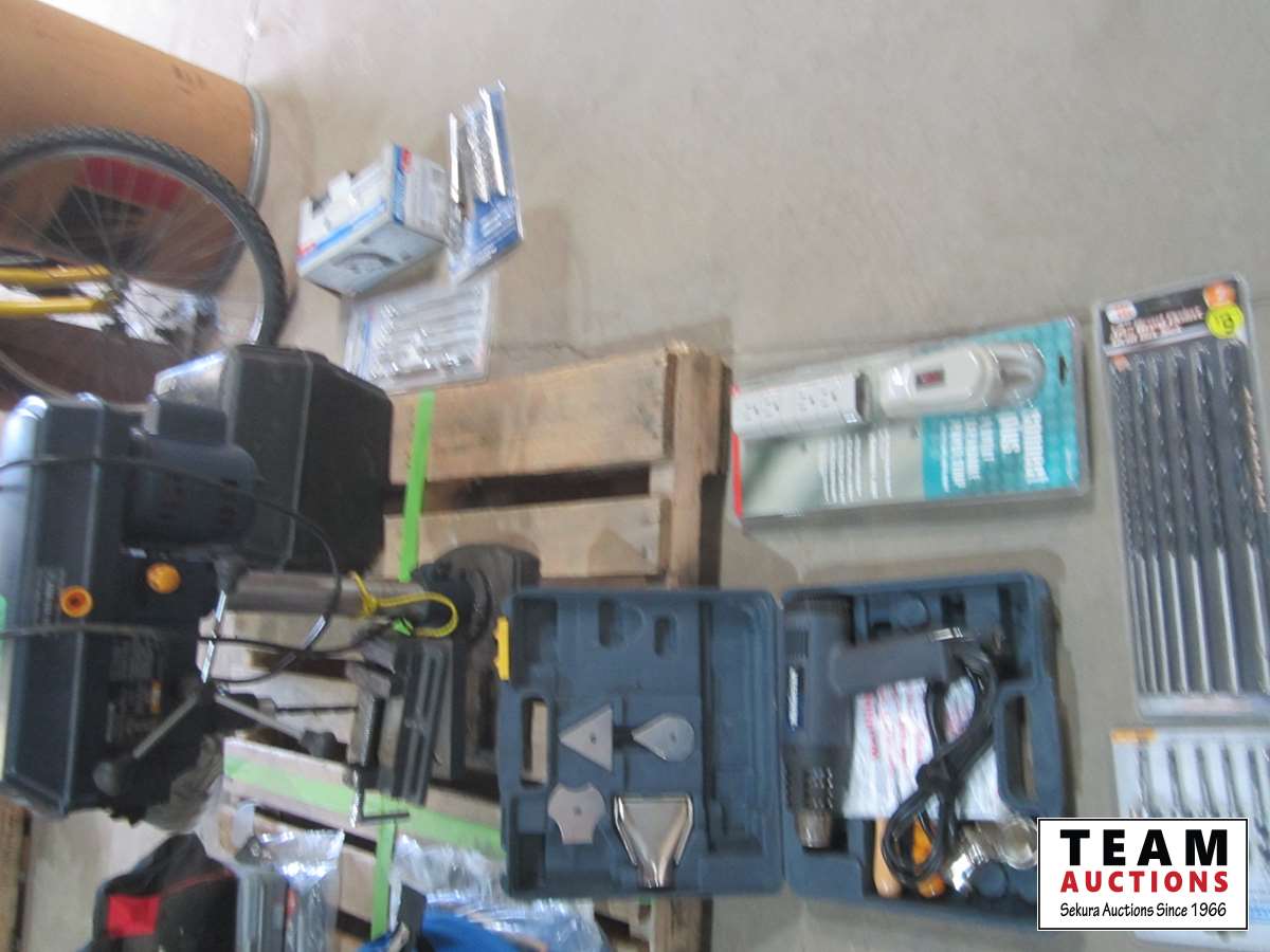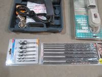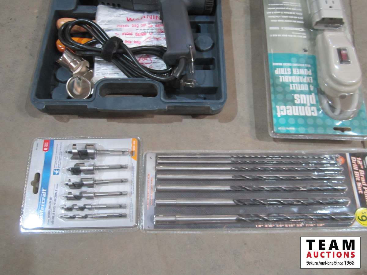 1349 Mastercraft Drill Press, Heat Gun & Power Strip, 12 Inch Wood Auger Bits