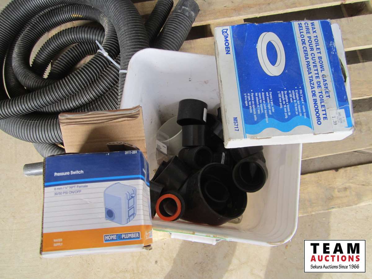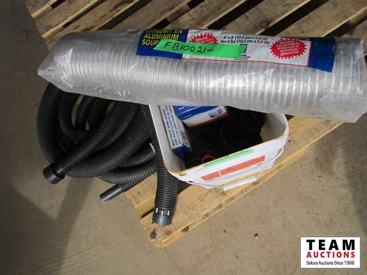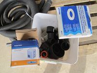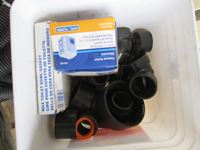 Shop vac, aluminum dryer hose, assorted fittings, plumbing parts