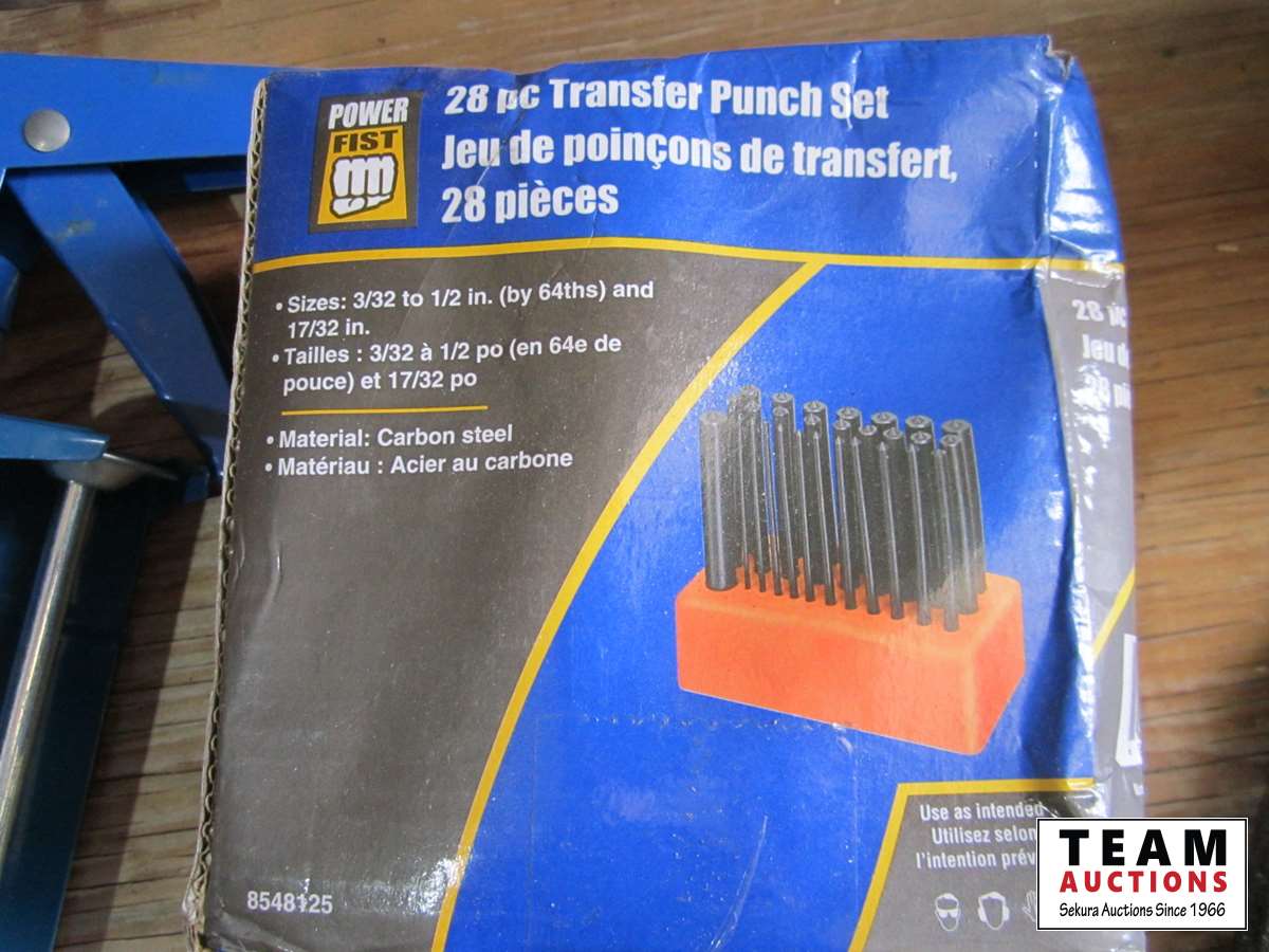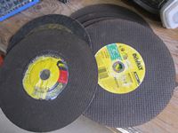Chop saw blades, caulking gun, punch set, dust mask