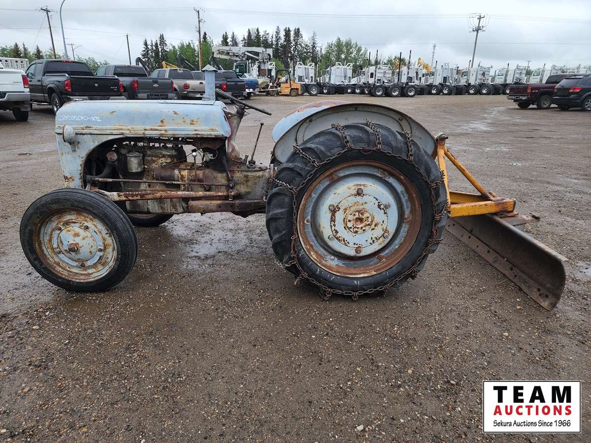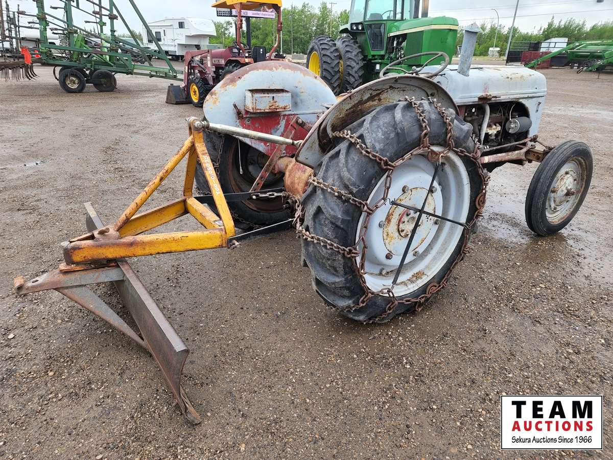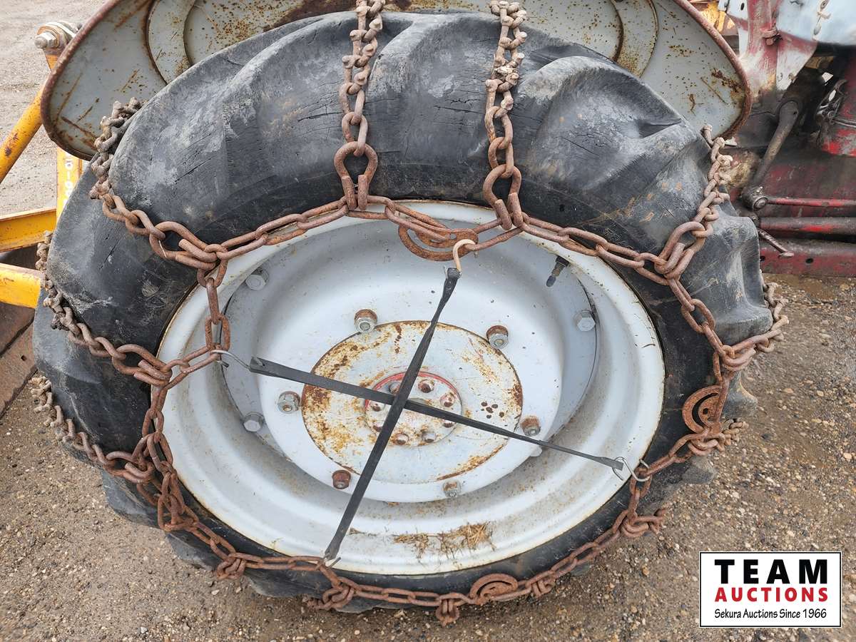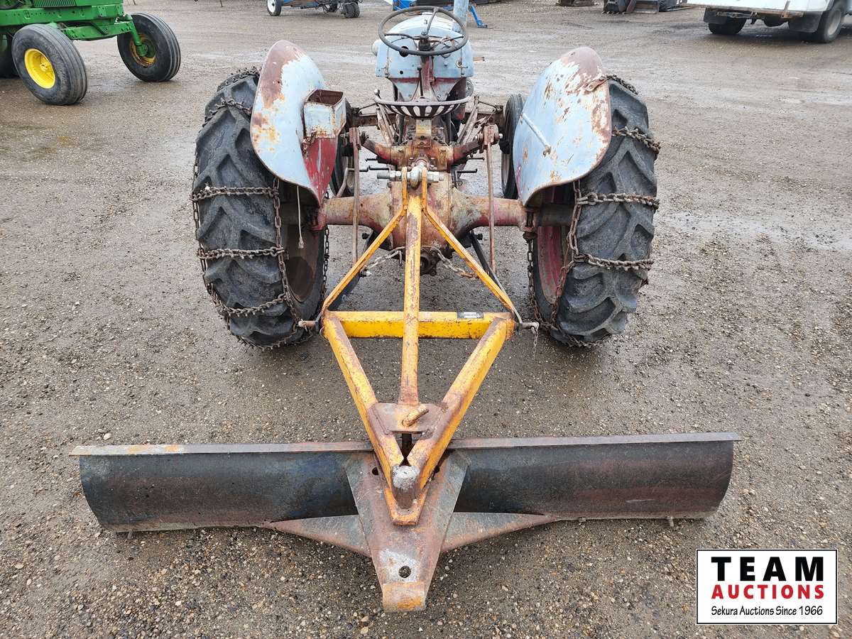 4 cylinder gas engine, 3 speed transmission, 540 PTO, Allied 7 ft rear blade, 4.00-19 front tires, 10-28 rear tires