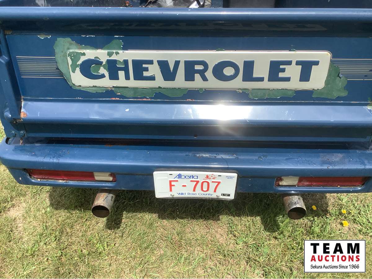 350 cu in., V8, gas, automatic transmission, 1981 Chevrolet 1500 short box chassis, 5 window cab, stereo system