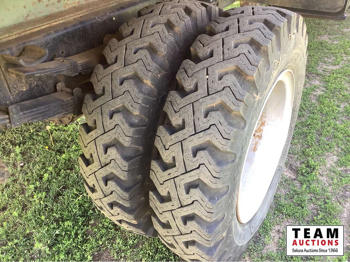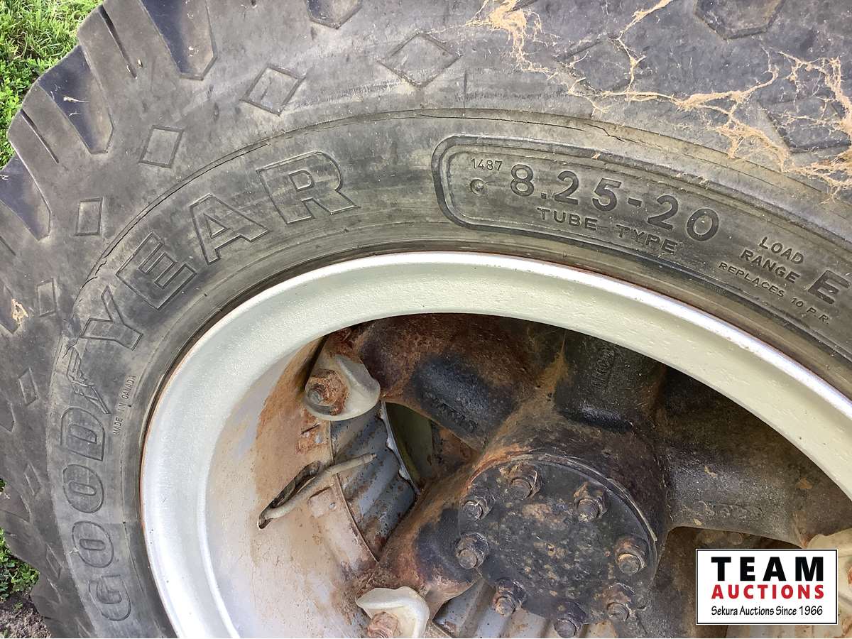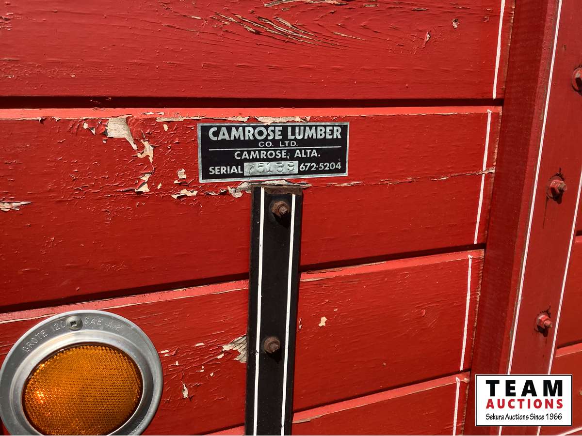 345 V8 engine, 4 x 2 speed transmission, auxiliary fuel tank, original 8.25 x 20 Goodyear tires, dual mufflers, 15 ft Camrose lumber box and twin cylinder Renn sizer hoist