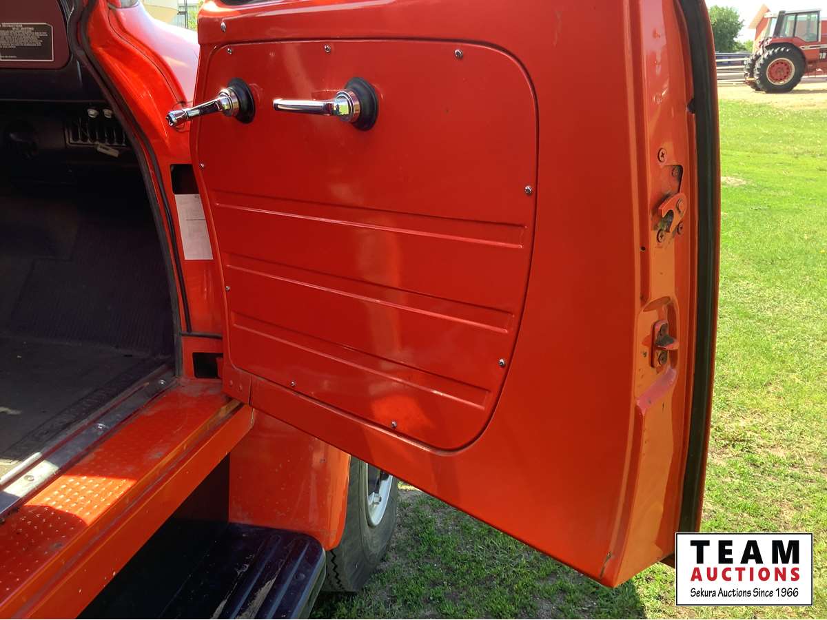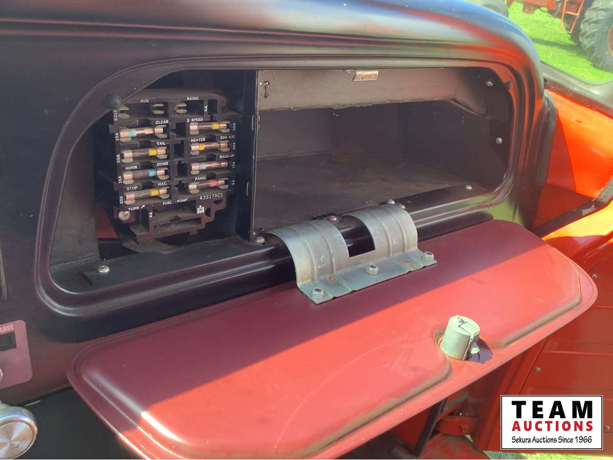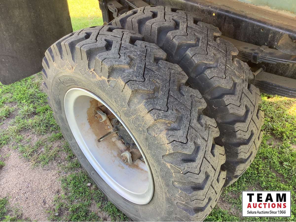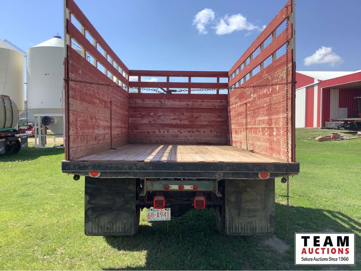 345 V8 engine, 4 x 2 speed transmission, auxiliary fuel tank, original 8.25 x 20 Goodyear tires, dual mufflers, 15 ft Camrose lumber box and twin cylinder Renn sizer hoist