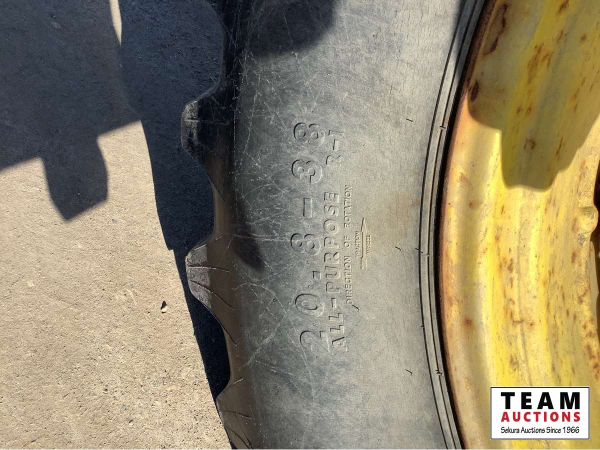 Ezze On Loader W/ bucket & bale forks, 130 HP, 7.6 L, 6 cylinder, diesel, 16 speed quad range partial power shift transmission, A/C cab, radio, rear triple hydraulic couplers, engine block heater, 20.8X 38 rear tires, 11.00X 16.5 front tires 540/1000 PTO