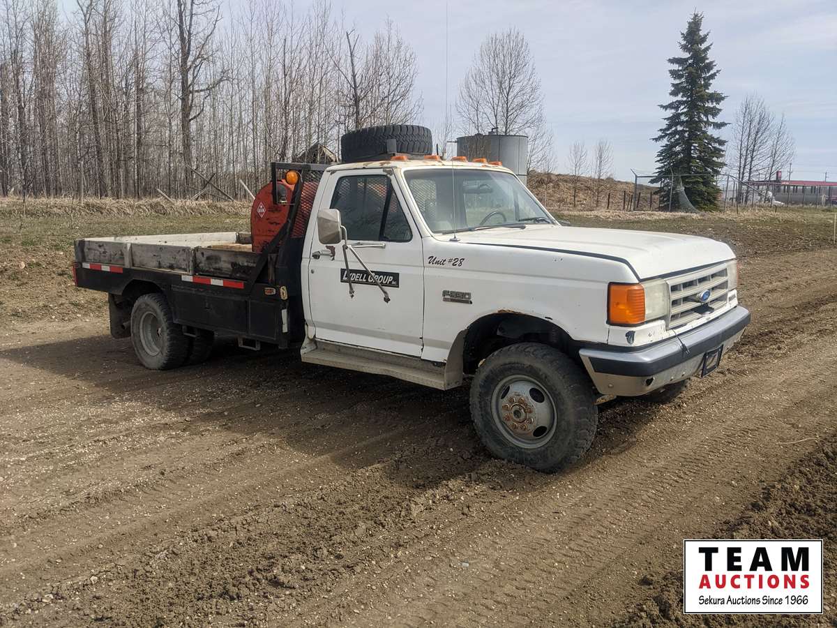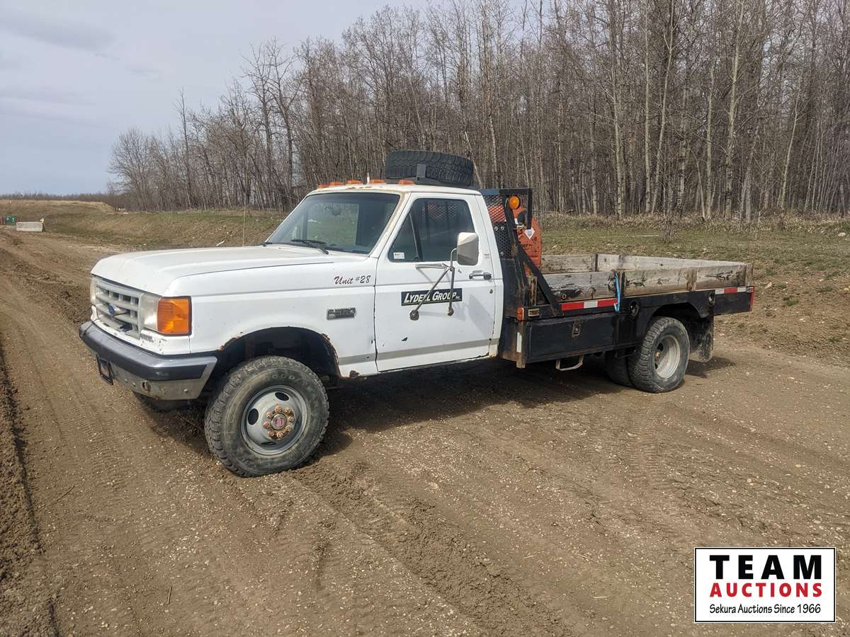 821A 1989 Ford F350 XL Regular Cab 4X4 S/A Flat Deck Truck