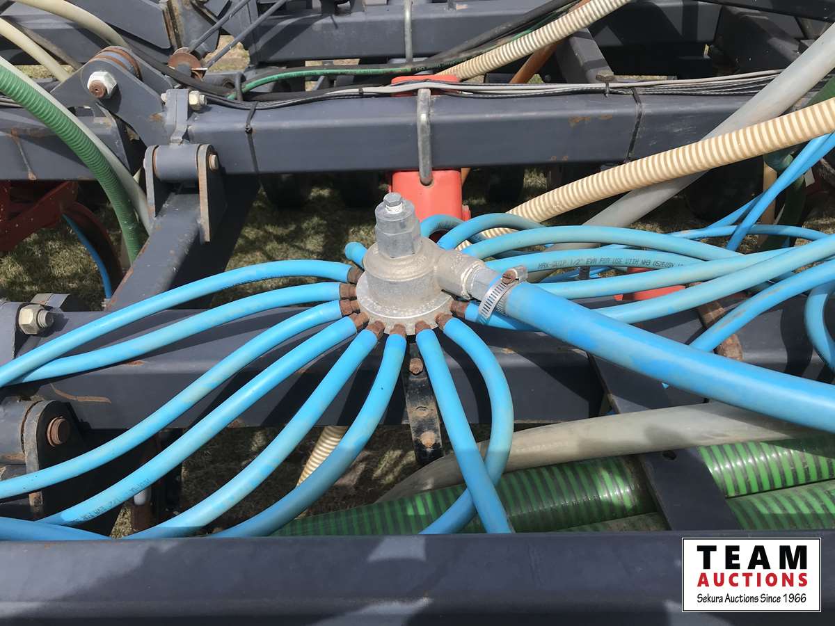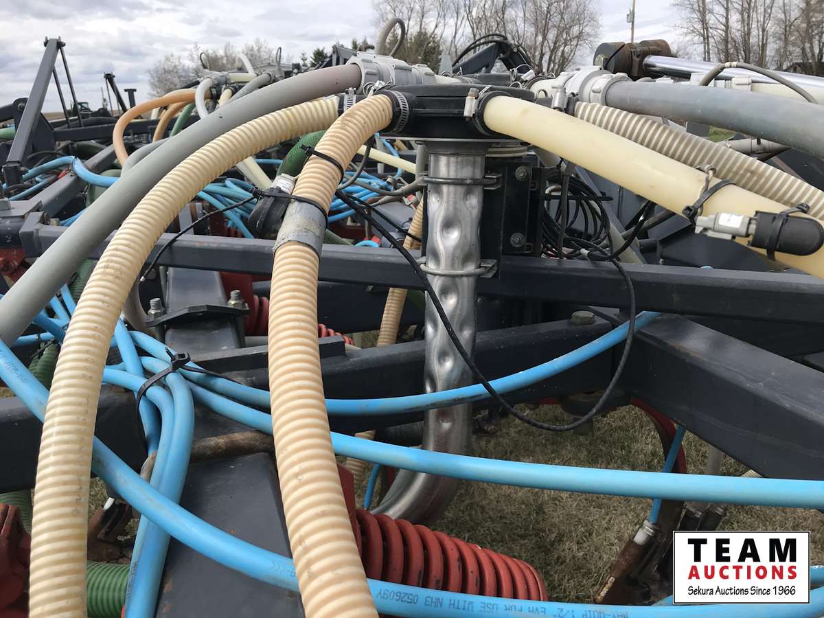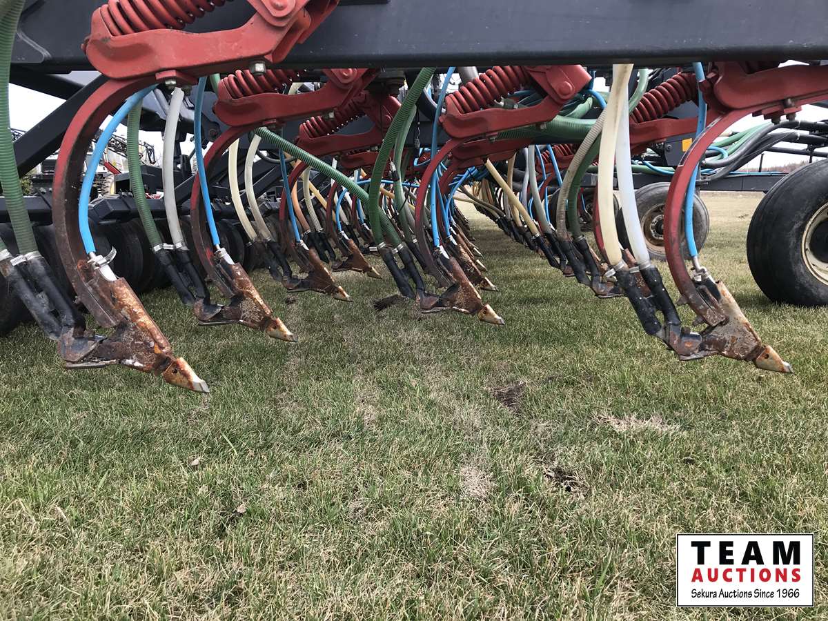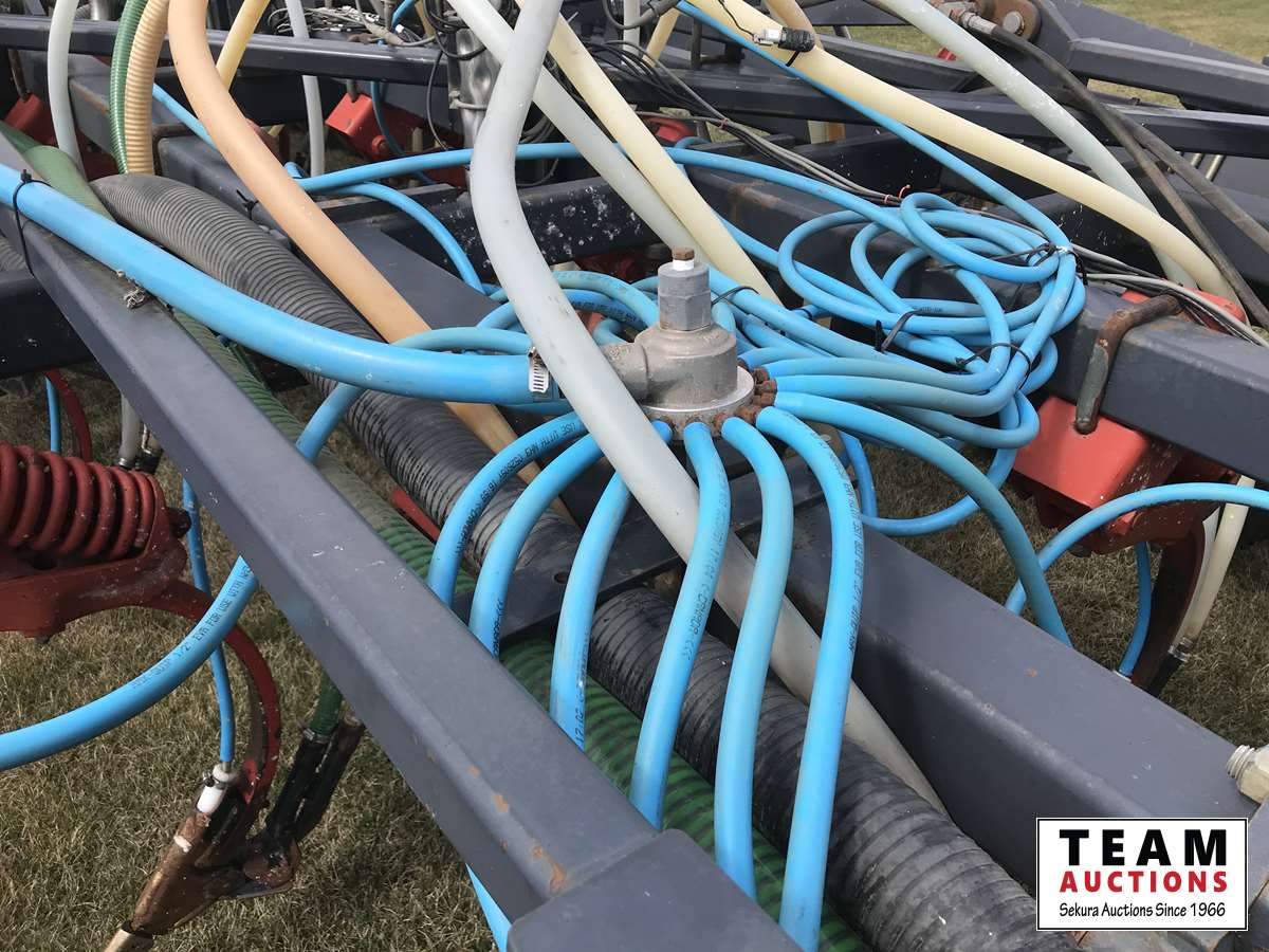12 inch spacing, 3-1/2 inch paired row Dutch Precision low draft openers plus anhydrous NH3, triple shoot capable, 5 inch rubber packers replaced packer bearings, all fertilizer bearings replaced with slainless, all new plastics, Argon blockage monitor to grain and fertilizer hoses, Dickie John Anhydrous kit, air cart has (3) tank compartment, electric in cab control, variable rate w/ battery and hydraulic driven alternator, all new Romafa piping kit, craddle, metering boxes, fertilizer risers, new lid seals, LED lights on tank, load auger bearings replaced, long extension for semi trailer loading, new motior switches box, operators manuals