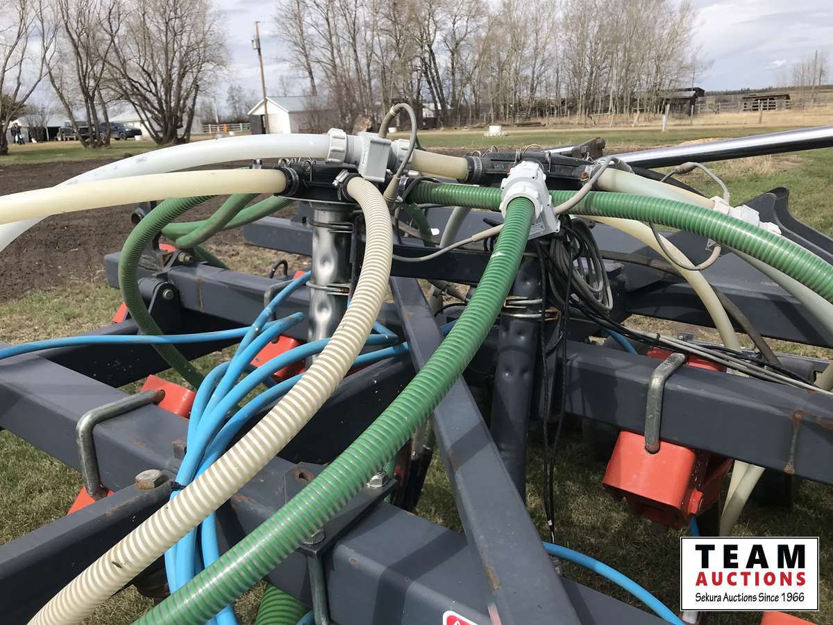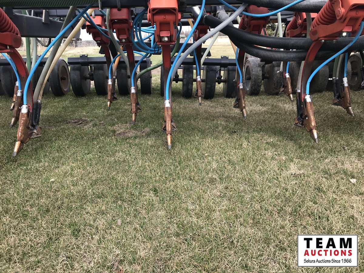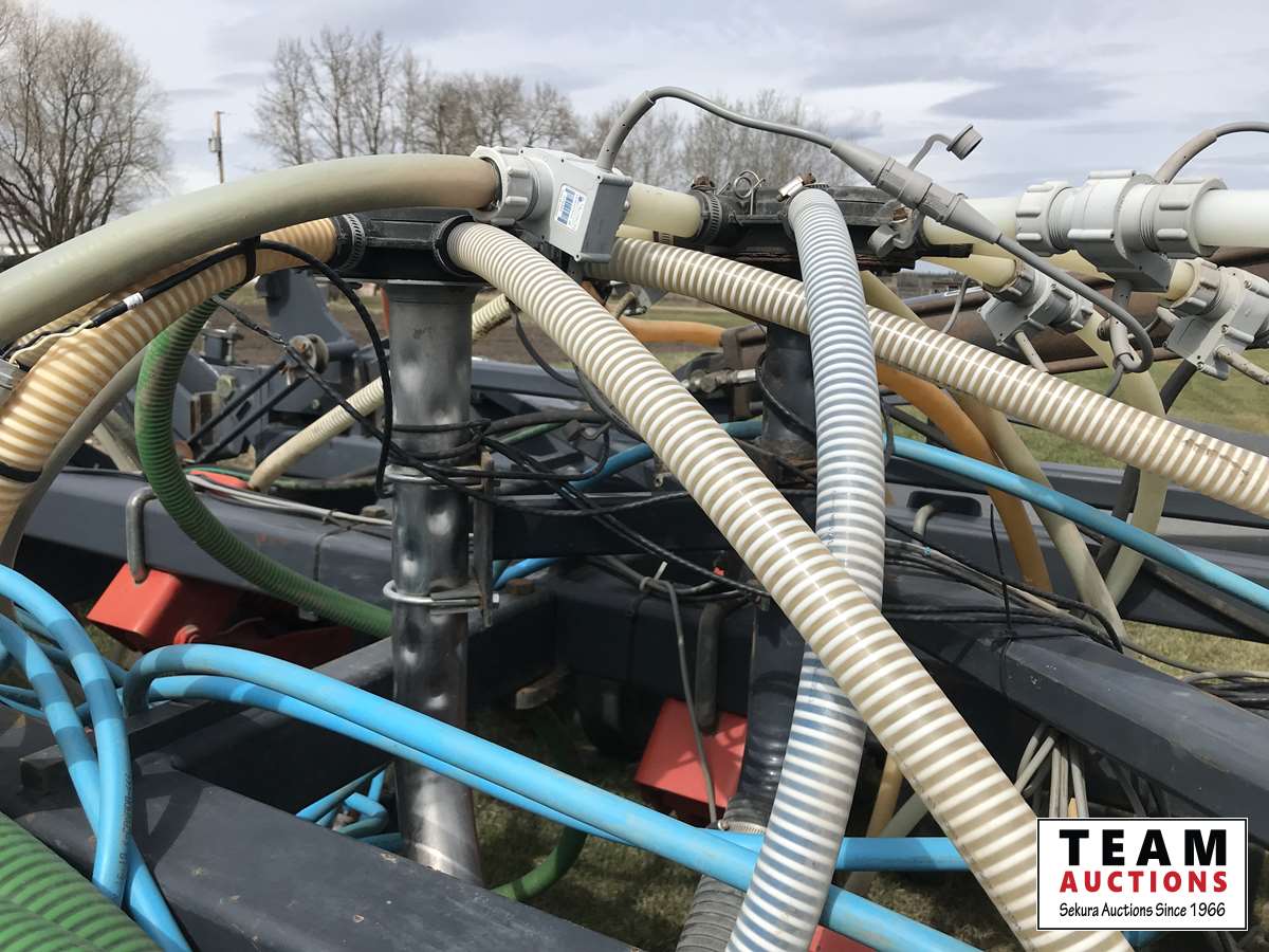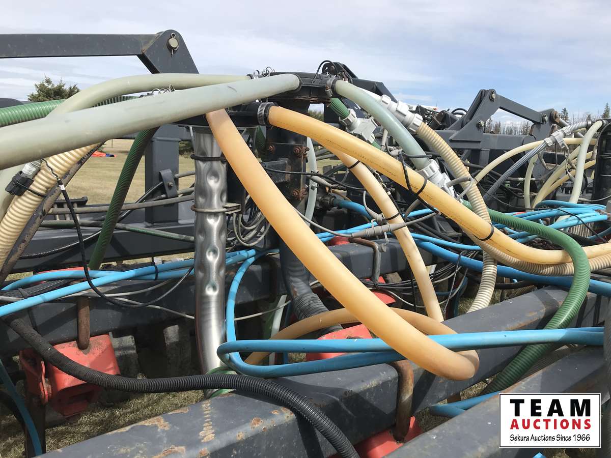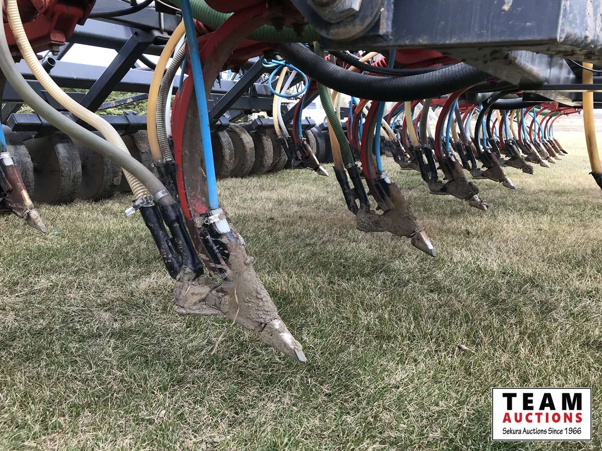 12 inch spacing, 3-1/2 inch paired row Dutch Precision low draft openers plus anhydrous NH3, triple shoot capable, 5 inch rubber packers replaced packer bearings, all fertilizer bearings replaced with slainless, all new plastics, Argon blockage monitor to grain and fertilizer hoses, Dickie John Anhydrous kit, air cart has (3) tank compartment, electric in cab control, variable rate w/ battery and hydraulic driven alternator, all new Romafa piping kit, craddle, metering boxes, fertilizer risers, new lid seals, LED lights on tank, load auger bearings replaced, long extension for semi trailer loading, new motior switches box, operators manuals