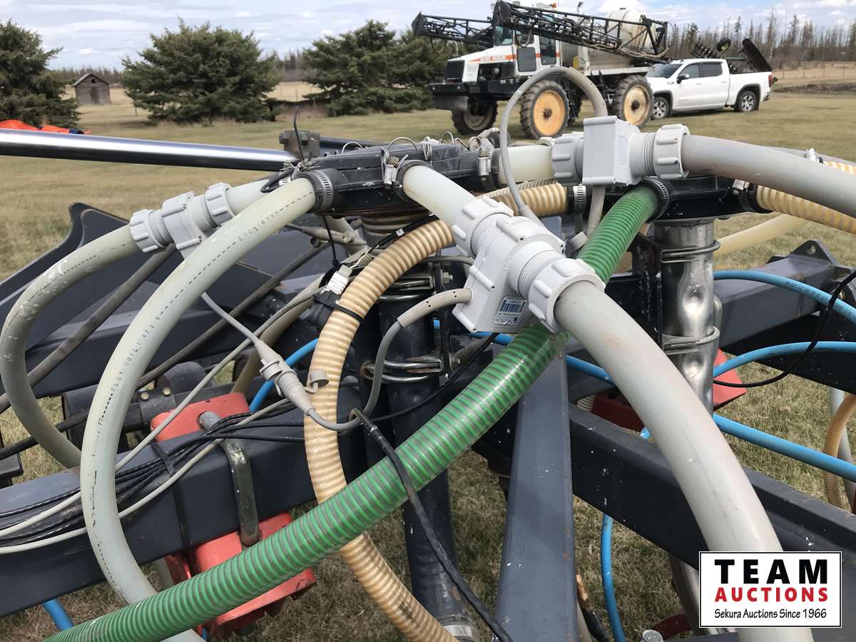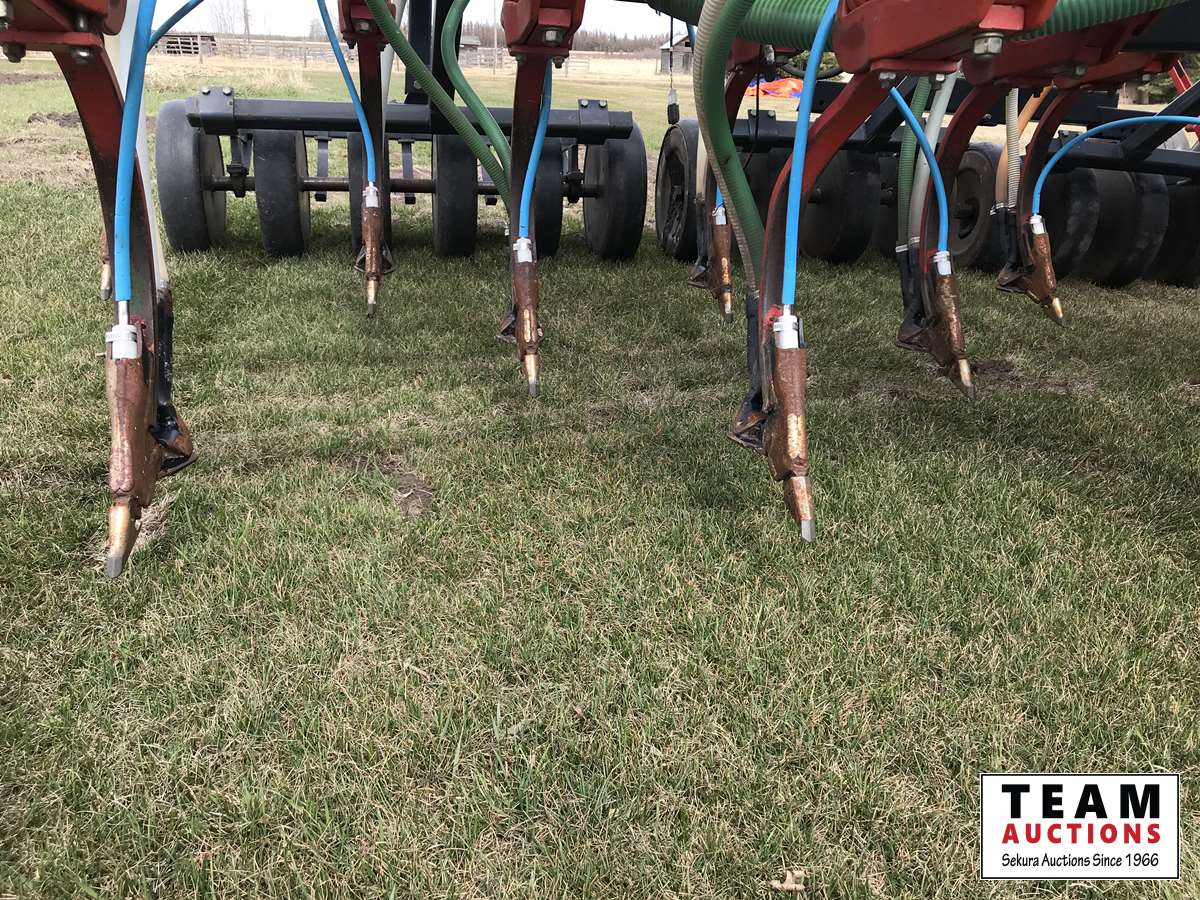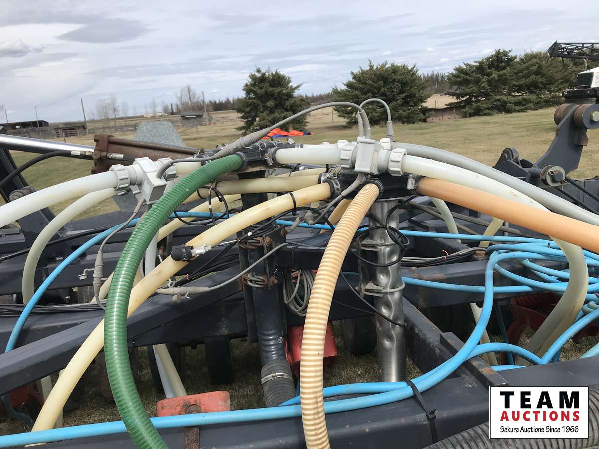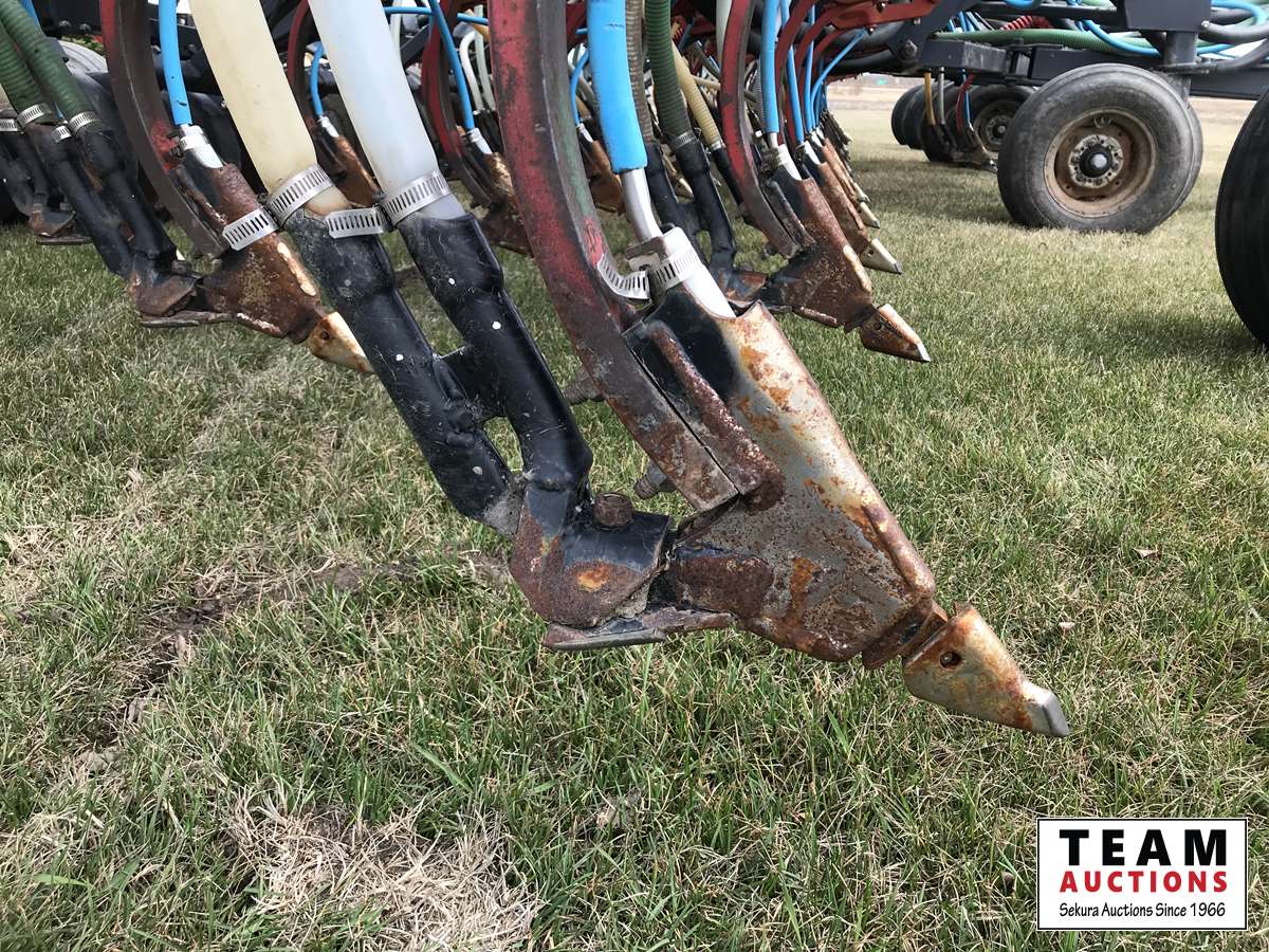 12 inch spacing, 3-1/2 inch paired row Dutch Precision low draft openers plus anhydrous NH3, triple shoot capable, 5 inch rubber packers replaced packer bearings, all fertilizer bearings replaced with slainless, all new plastics, Argon blockage monitor to grain and fertilizer hoses, Dickie John Anhydrous kit, air cart has (3) tank compartment, electric in cab control, variable rate w/ battery and hydraulic driven alternator, all new Romafa piping kit, craddle, metering boxes, fertilizer risers, new lid seals, LED lights on tank, load auger bearings replaced, long extension for semi trailer loading, new motior switches box, operators manuals