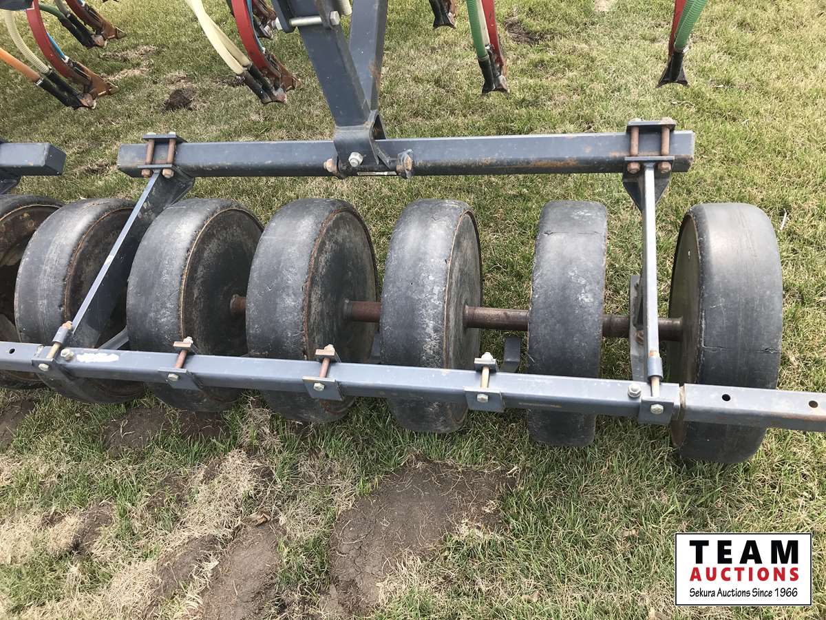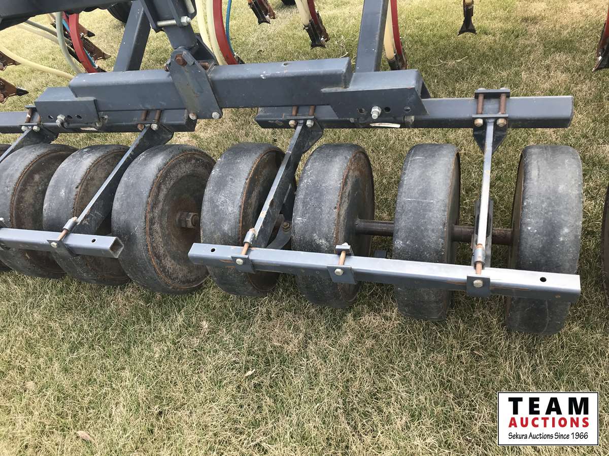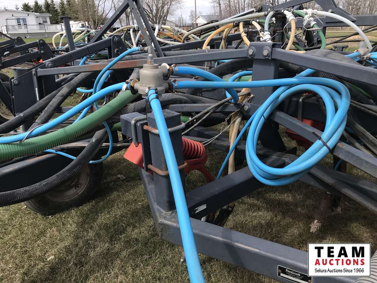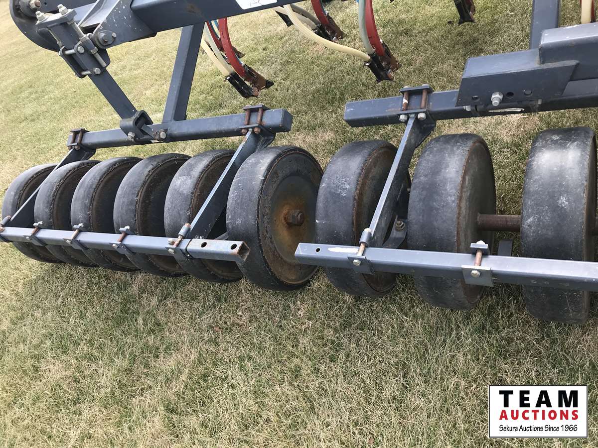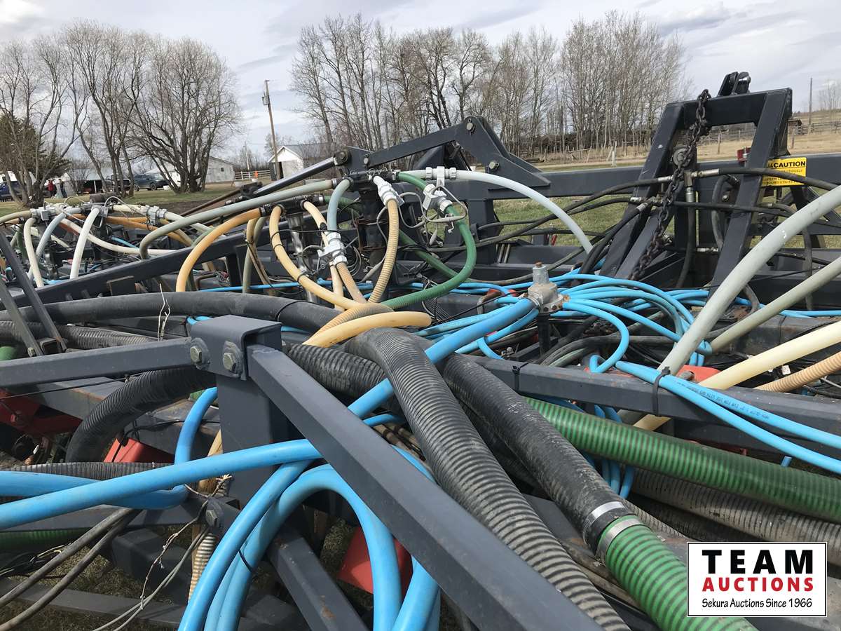12 inch spacing, 3-1/2 inch paired row Dutch Precision low draft openers plus anhydrous NH3, triple shoot capable, 5 inch rubber packers replaced packer bearings, all fertilizer bearings replaced with slainless, all new plastics, Argon blockage monitor to grain and fertilizer hoses, Dickie John Anhydrous kit, air cart has (3) tank compartment, electric in cab control, variable rate w/ battery and hydraulic driven alternator, all new Romafa piping kit, craddle, metering boxes, fertilizer risers, new lid seals, LED lights on tank, load auger bearings replaced, long extension for semi trailer loading, new motior switches box, operators manuals