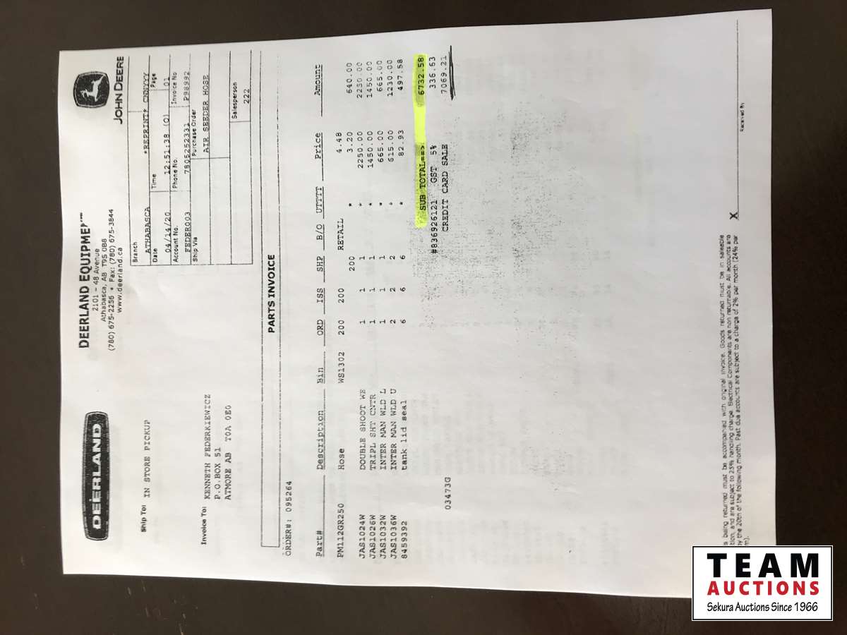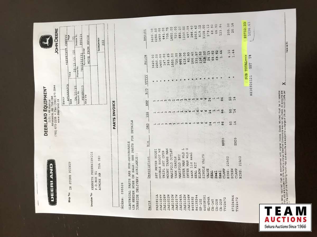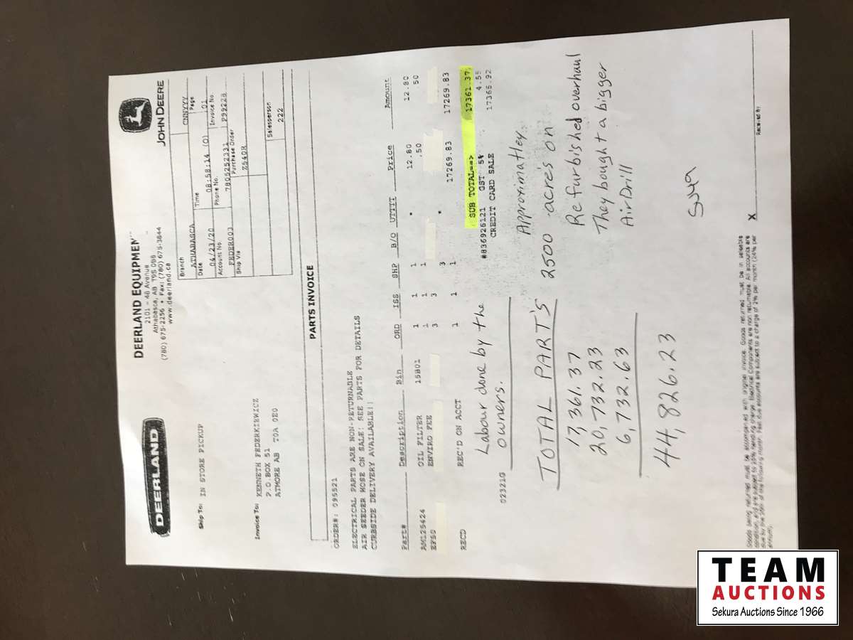 Rebuild was approximately $46,000. Around 2500 acres on rebuild. Owner bought larger air drill is the reason for selling. Unit has always been sheeded since owned, very nice unit. All work orders on hand.