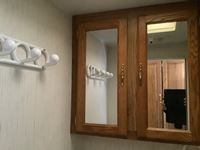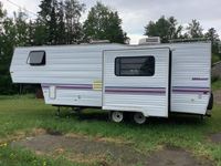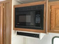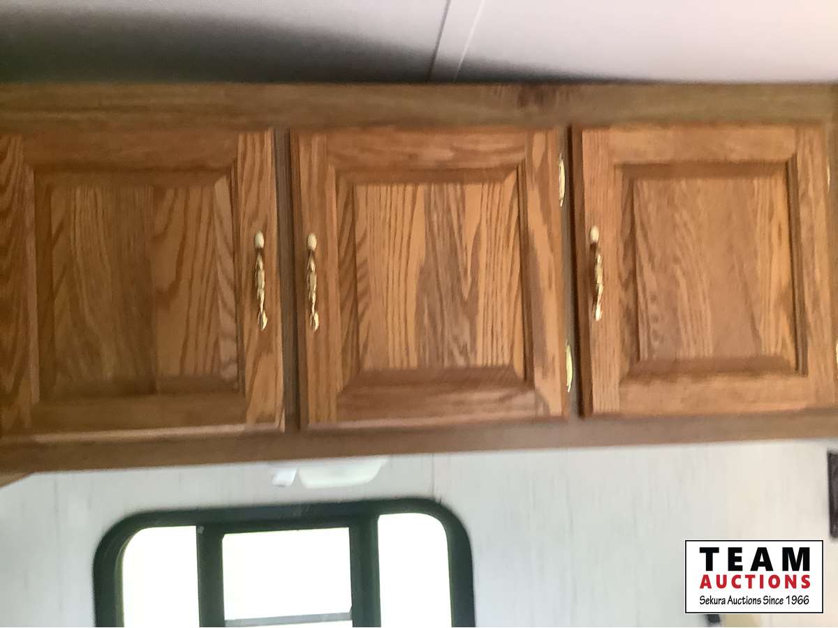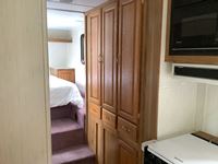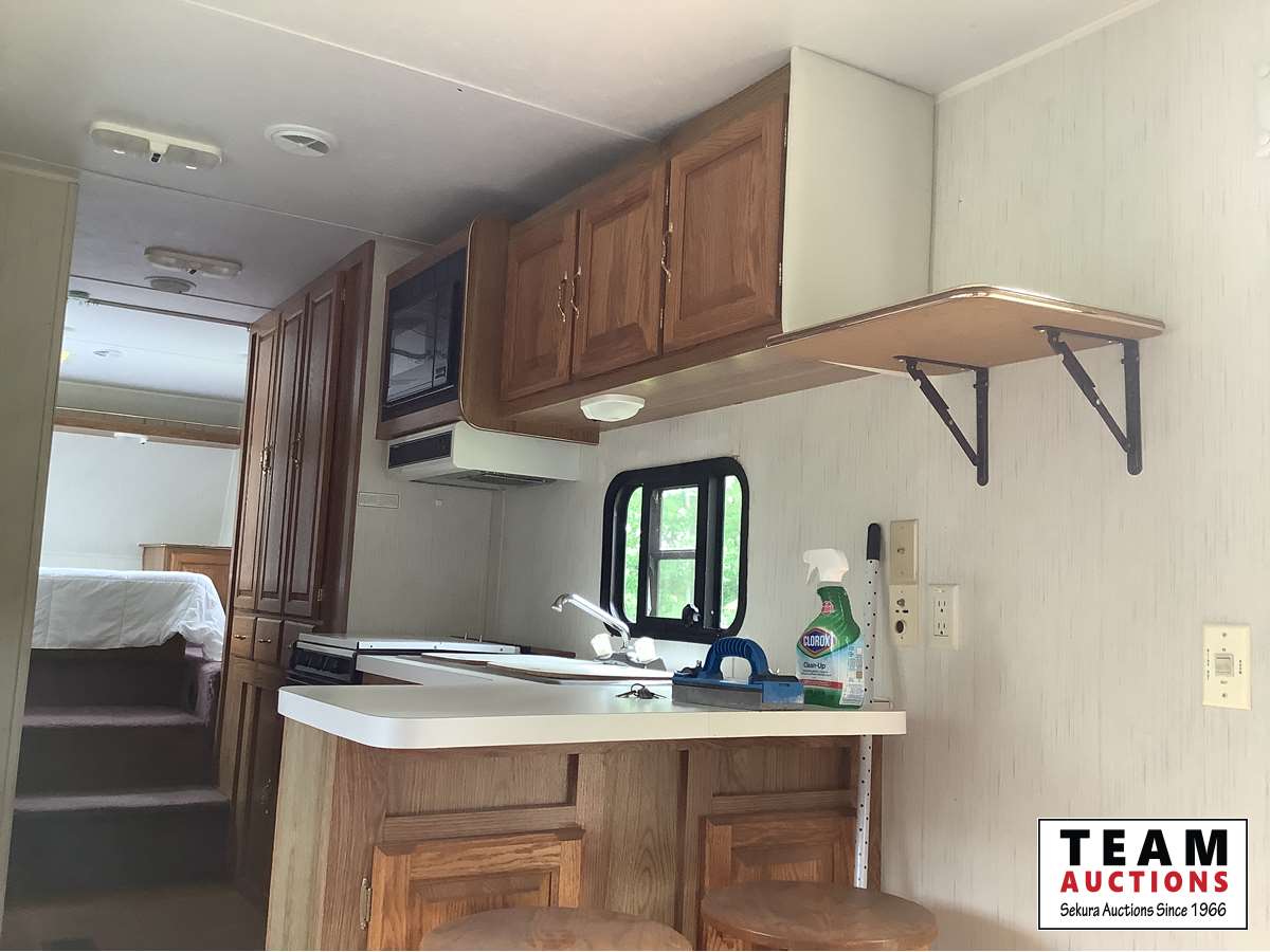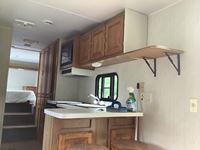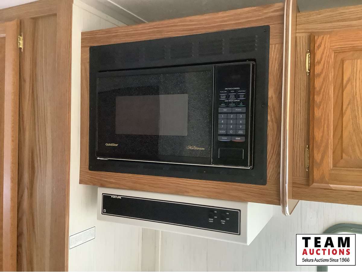 One slide, fridge, freezer, stove, microwave, A/C, furnace, full bathroom, awning