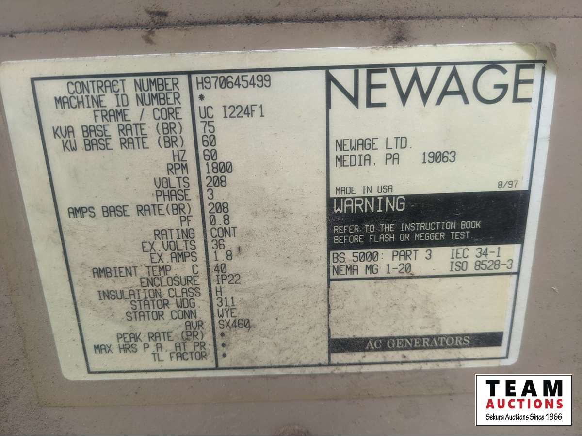 117 1998 Newage Stamford 60 kW Skid Mounted Generator
