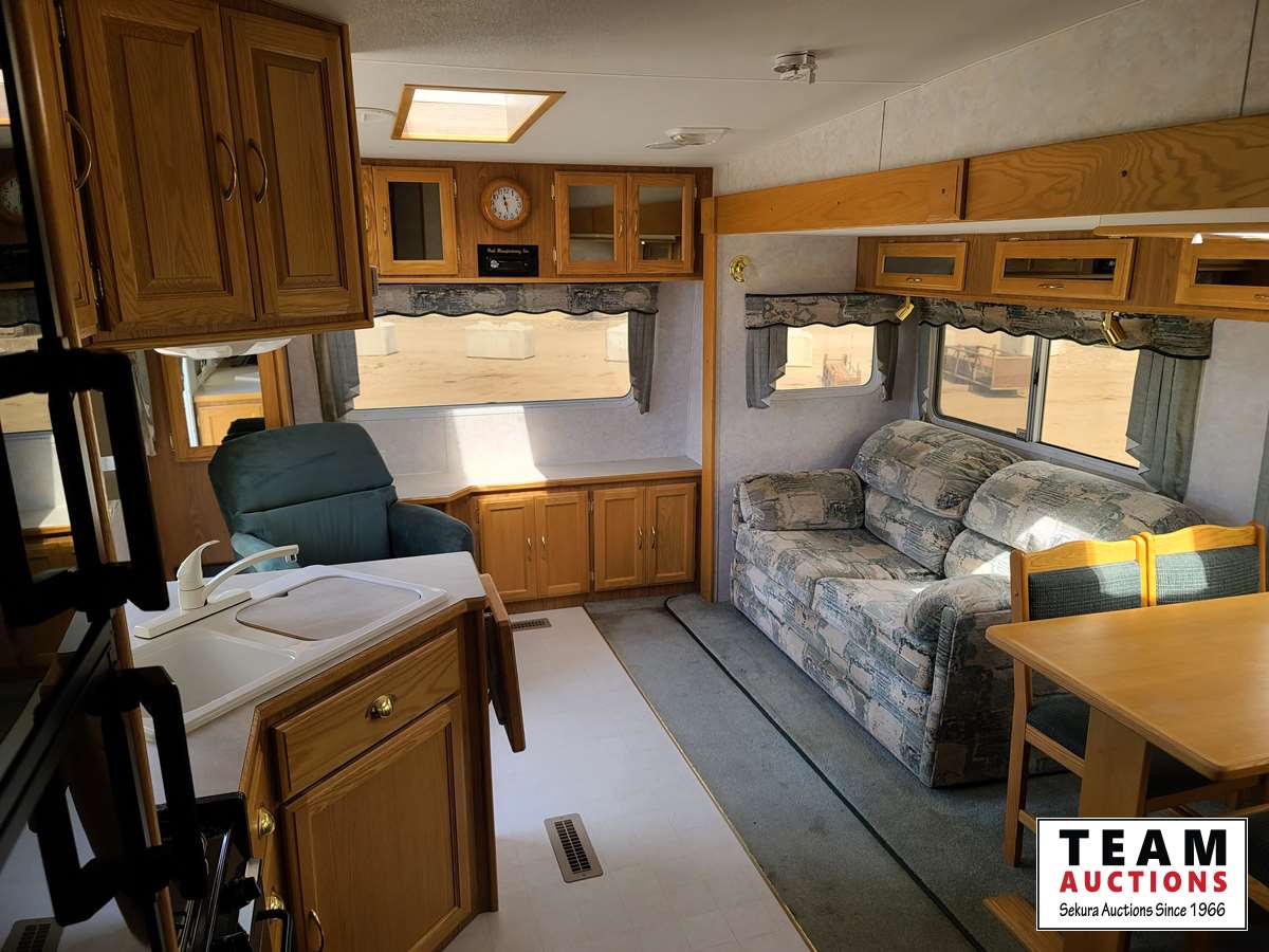 (1) slide out, fridge, stove, microwave, coffee maker, dinette, couch, rocking chair, full bathroom, queen bed, A/C, 235/75R15 tires