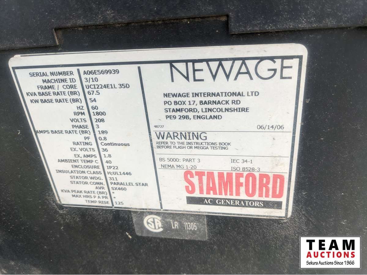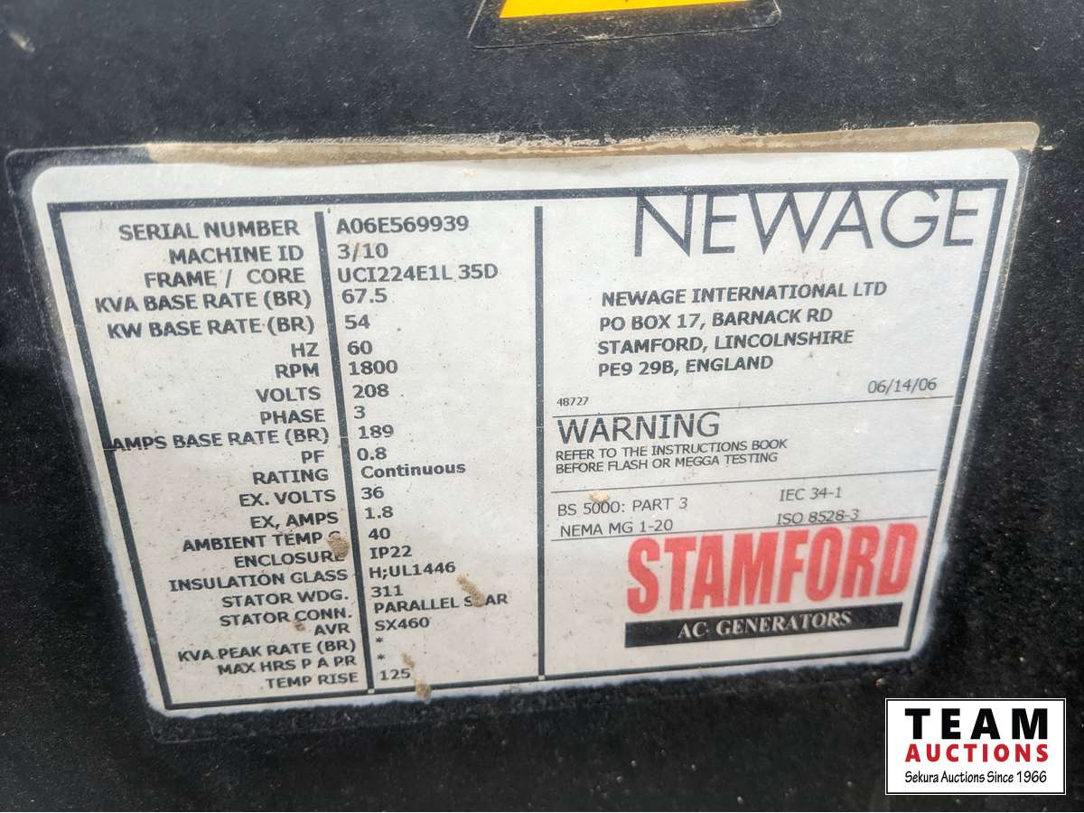 125 2006 Newage Stamford 54 kW Skid Mounted Generator