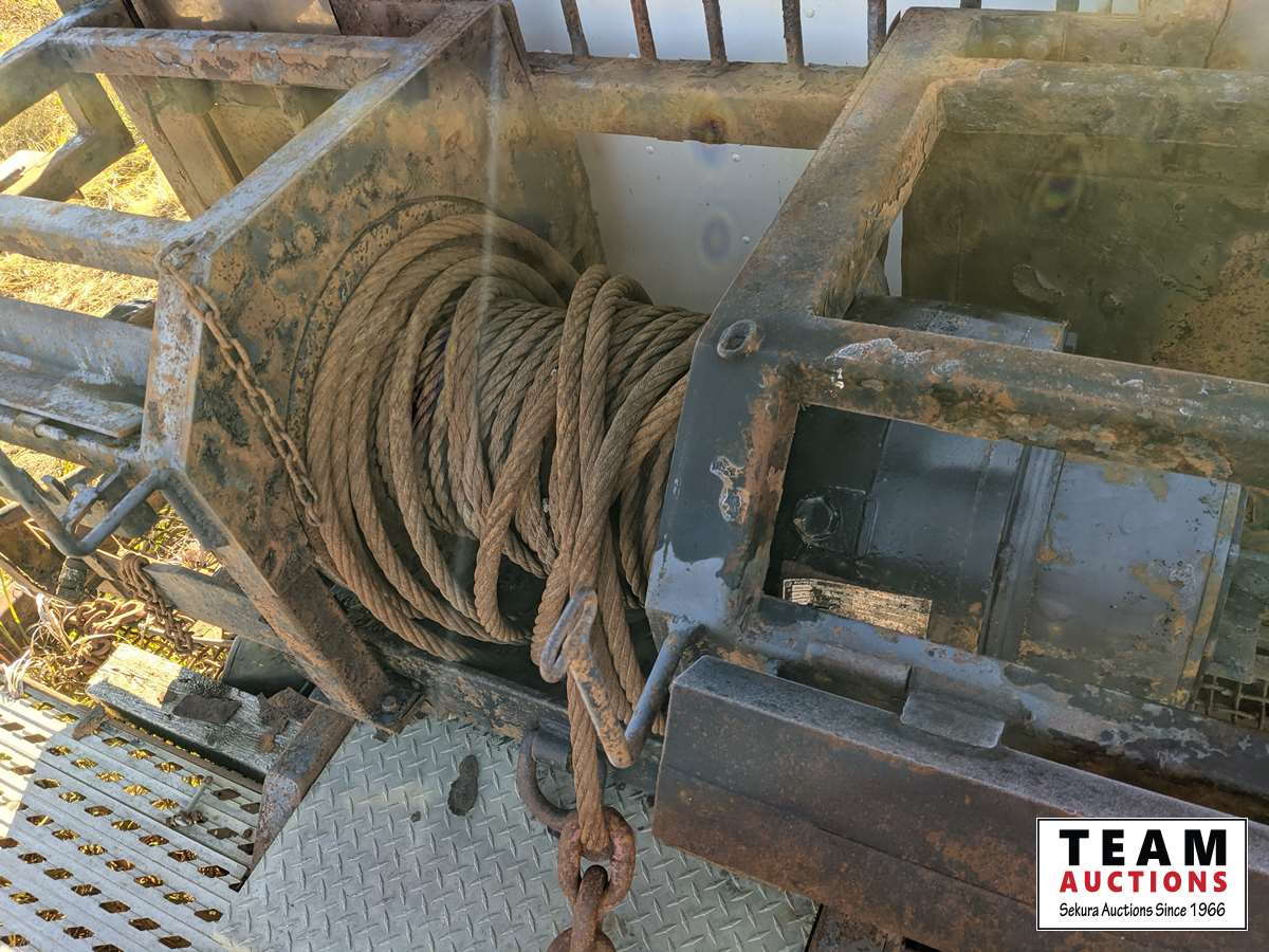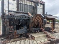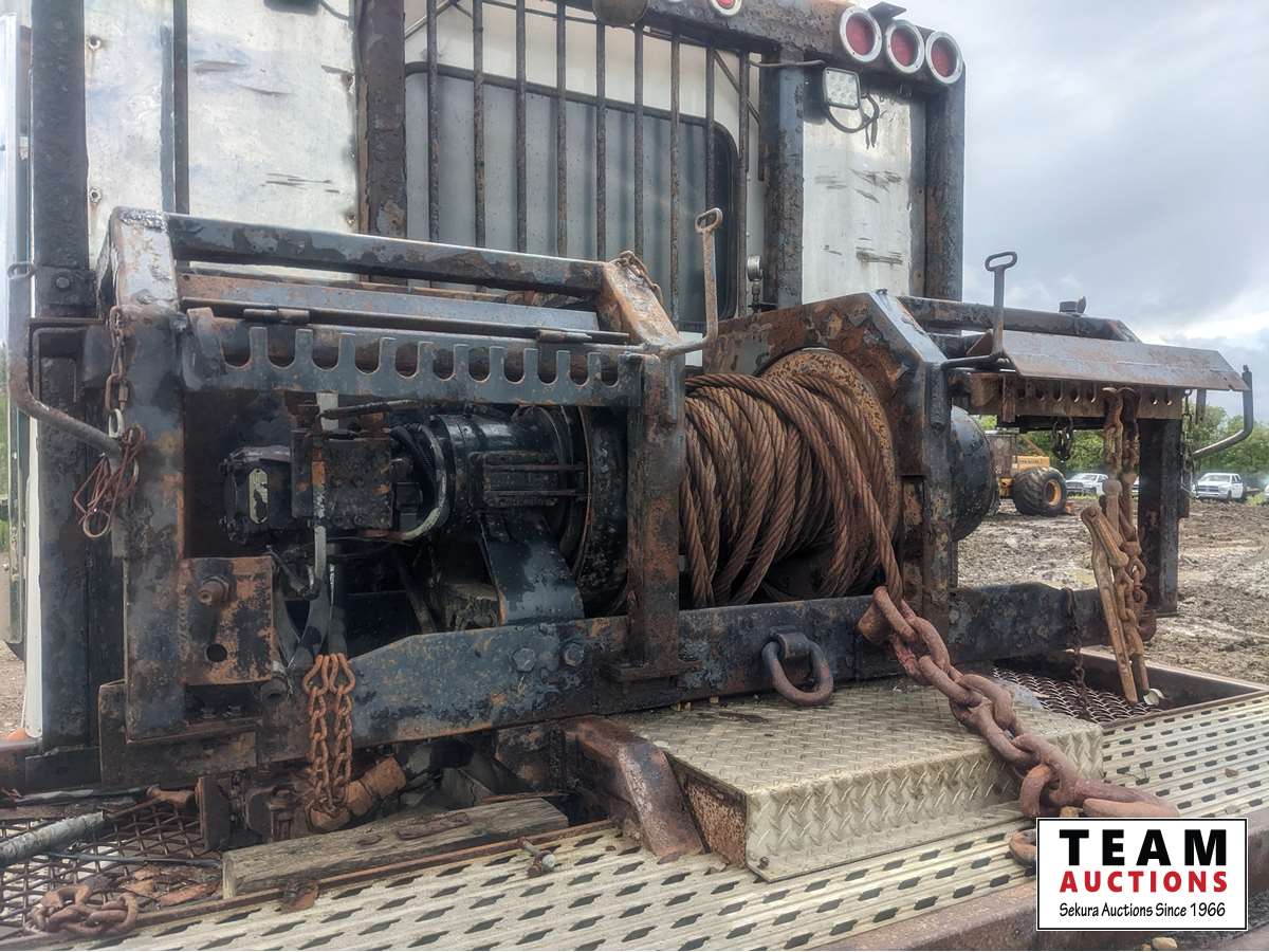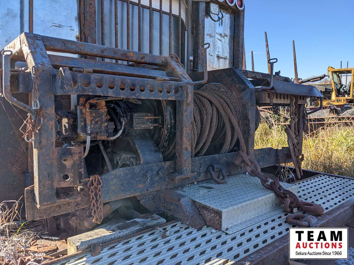 Caterpillar C15, 475 HP, 6 cylinder, engine brake, Eaton Fuller RTLO18918B 18 speed transmission, triple differential lock, cross lock, Meritor FL941 20000 lb front, Meritor RZ166RSRS 66000 lb rears, 266 WB, 4.30 ratio, Frontier Fabrication rig up, Tulsa 80 ton hydraulic drive winch, lowbed ramps