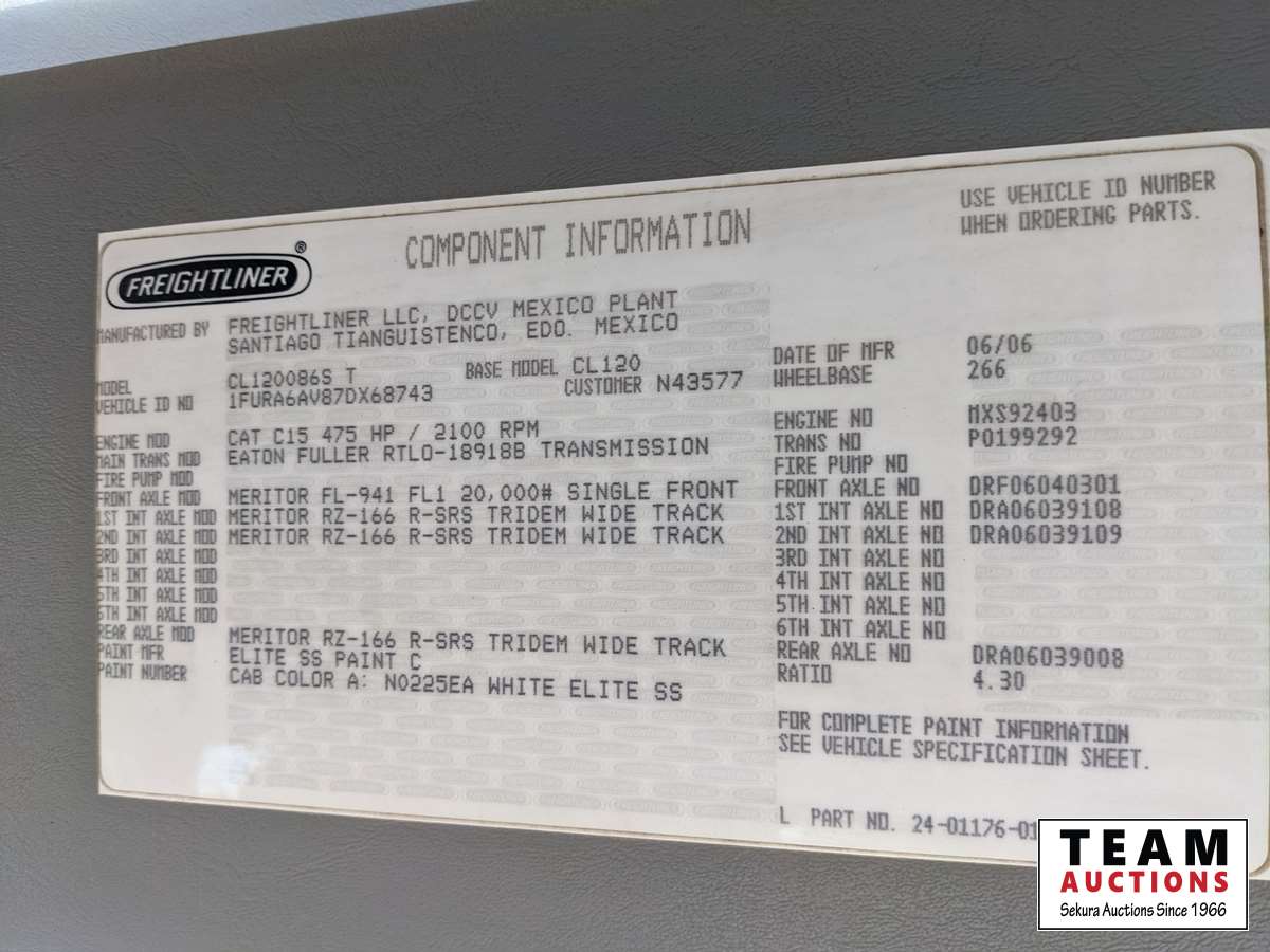 285 2007 Freightliner CL120 Tri Drive Sleeper Winch Heavy Truck Tractor (Inoperable)